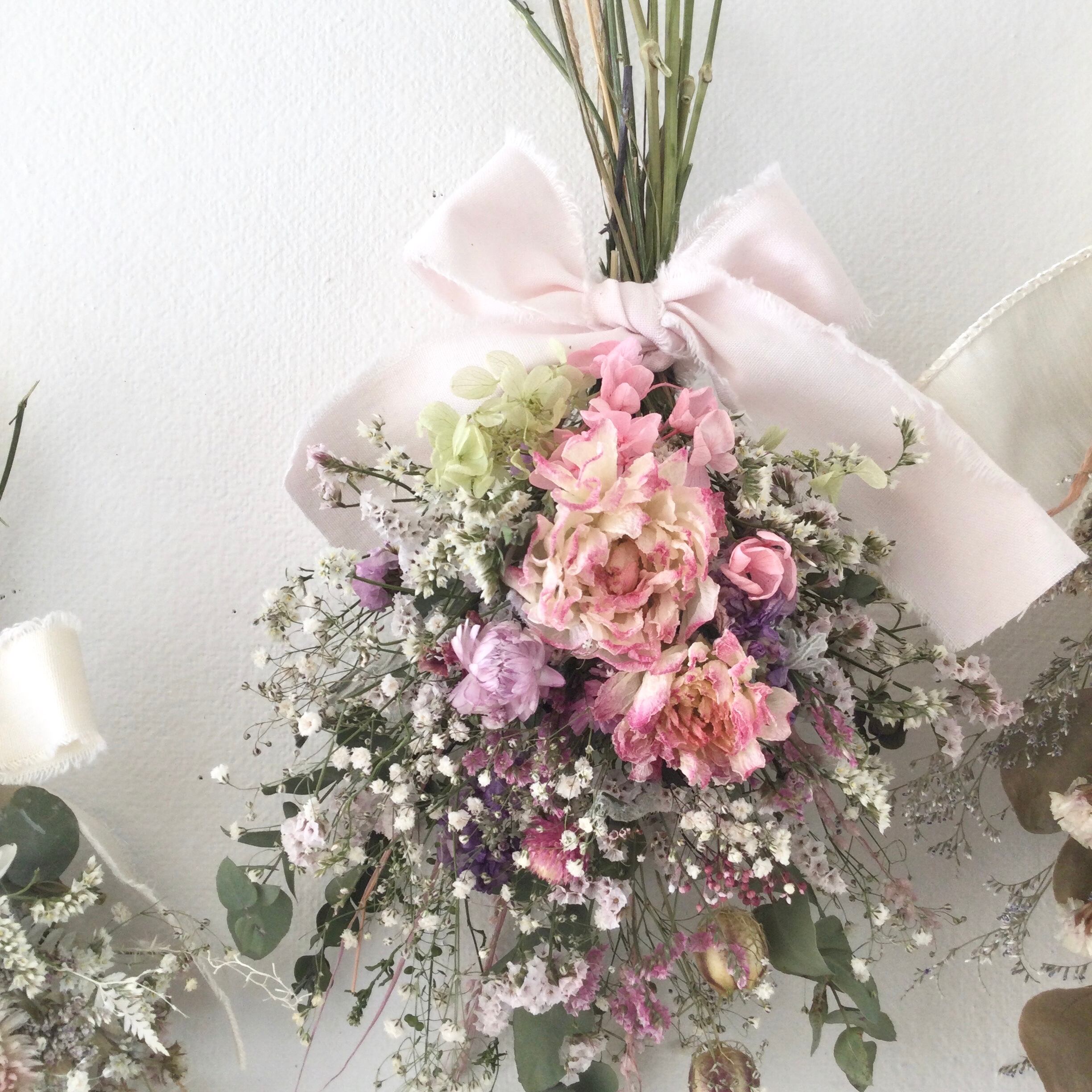 ラナンキュラスと小花のナチュラルスワッグ ピンク ドライフラワー 誕生日プレゼント 引っ越し祝い 記念日 ギフト