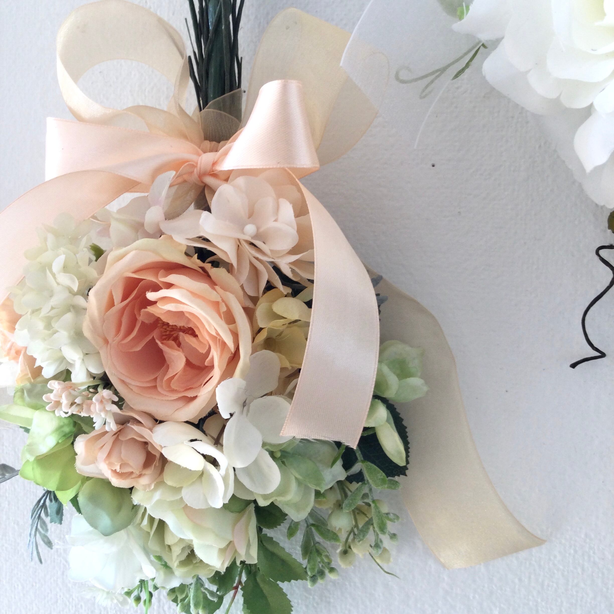 オレンジ ローズと小花のスワッグ アーティフィシャルフラワー 誕生日プレゼント 引っ越し祝い 記念日 ギフト