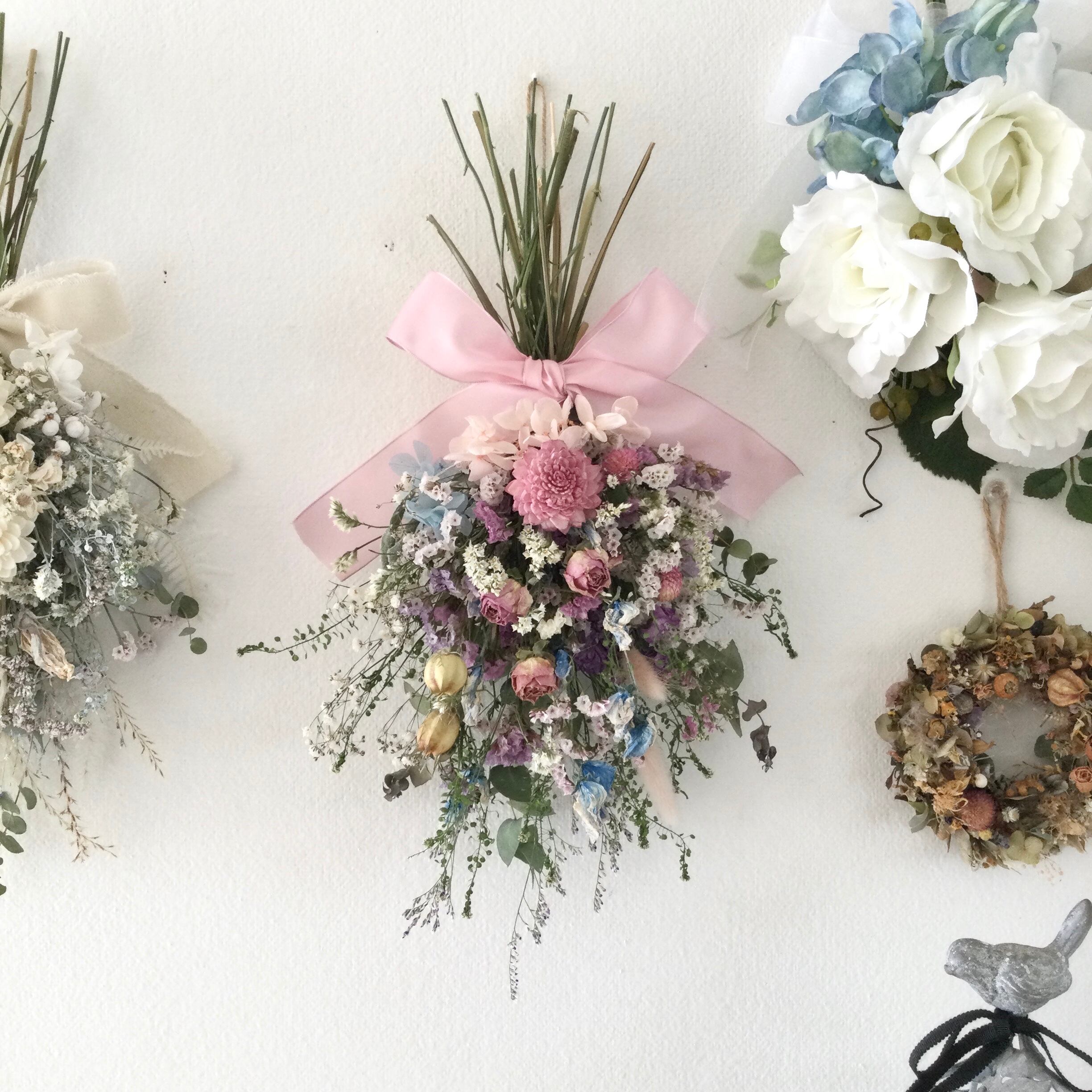 ソラダリア ローズと小花のスワッグ ドライフラワー 誕生日プレゼント 引っ越し祝い 記念日 ギフト