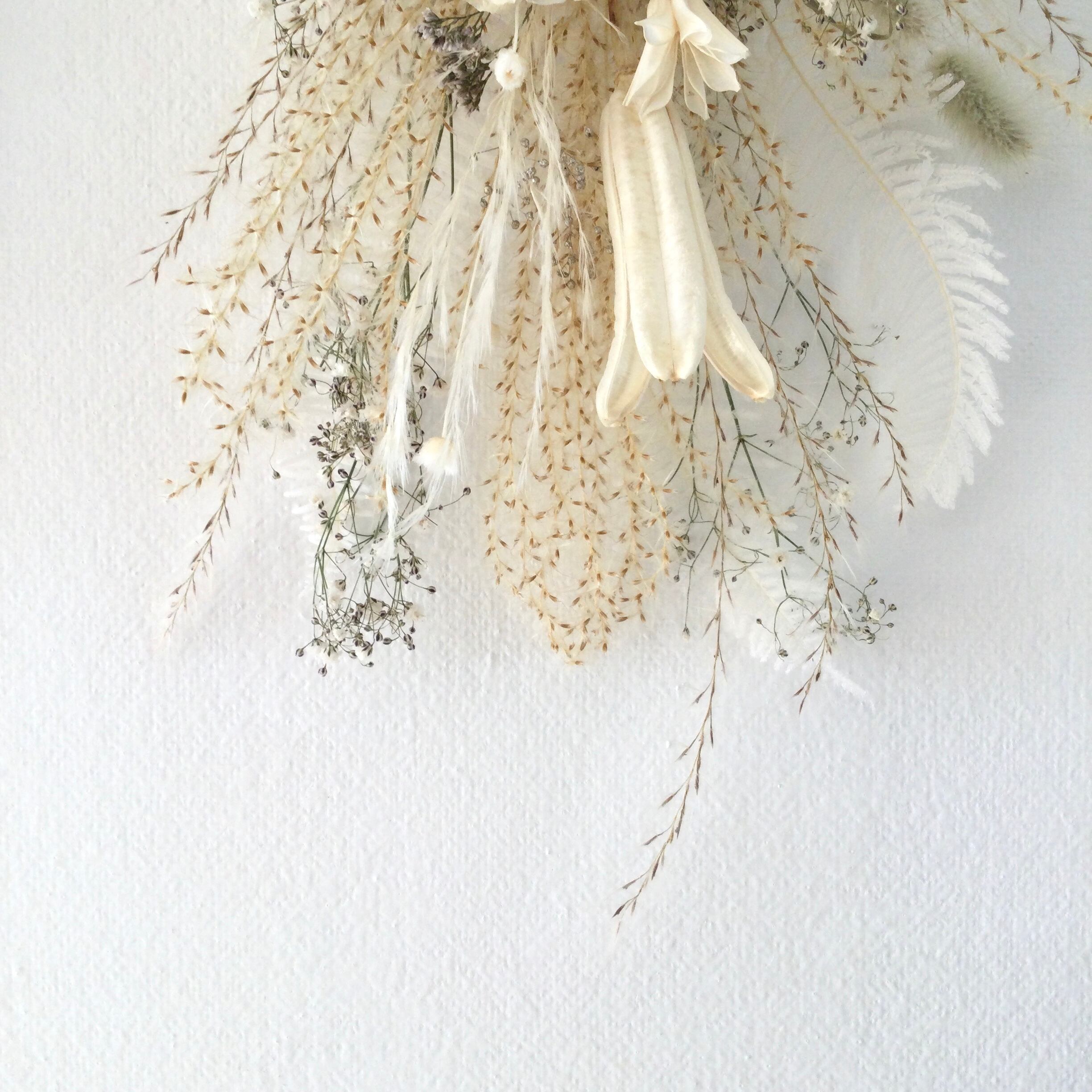 ナチュラルホワイト アネモネのスワッグ ドライフラワー 誕生日プレゼント 引っ越し祝い 記念日 ギフト