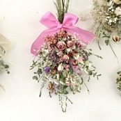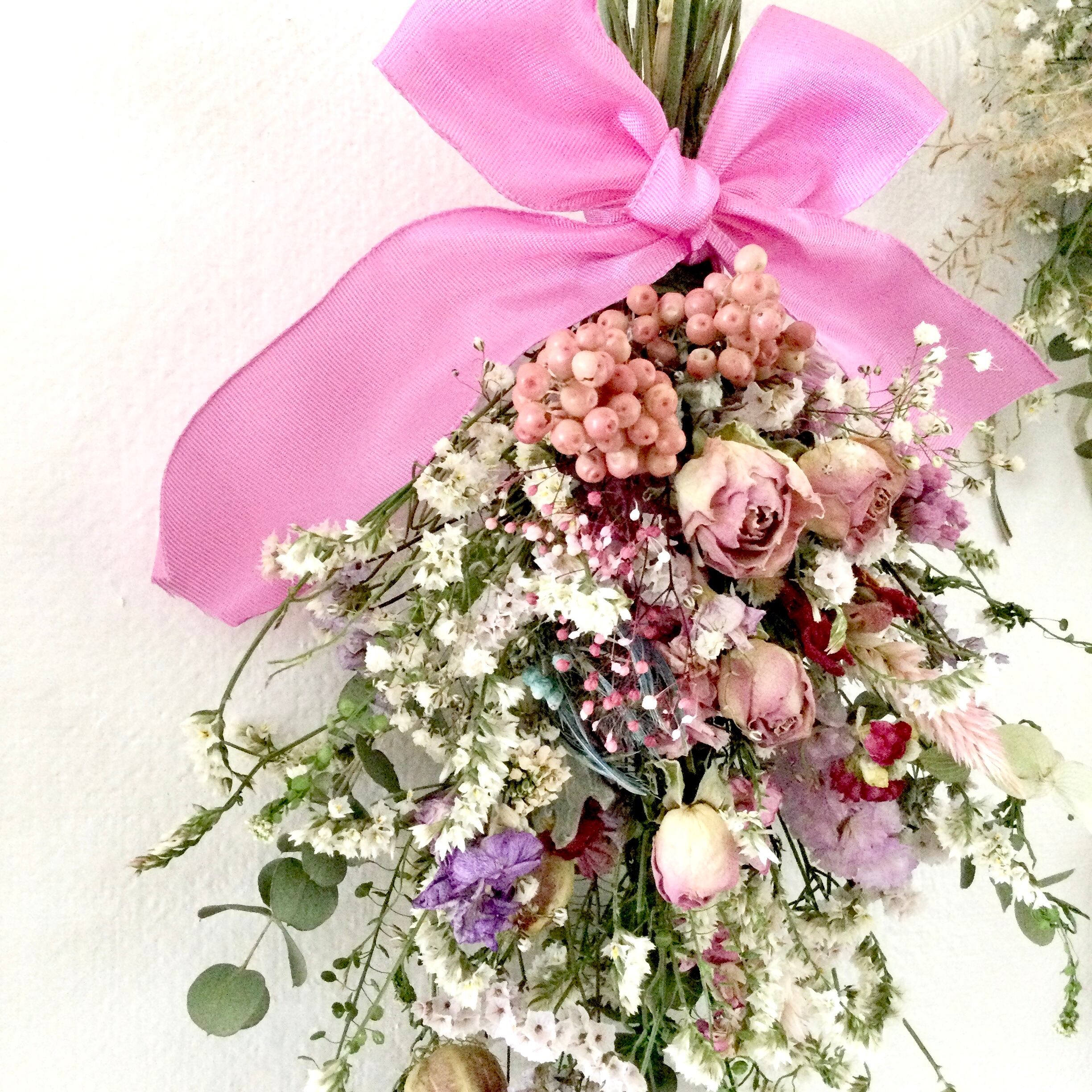 ローズと小花のナチュラルスワッグ ピンク ドライフラワー 誕生日プレゼント 引っ越し祝い 記念日 ギフト