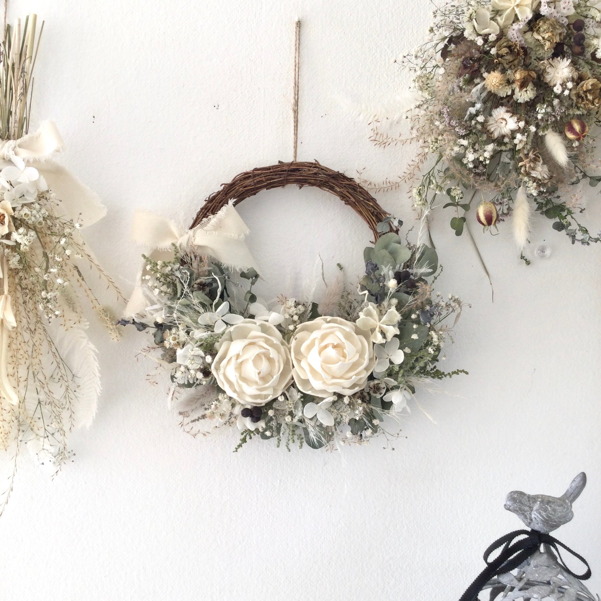 ユーカリとソララナンキュラスのリースです。