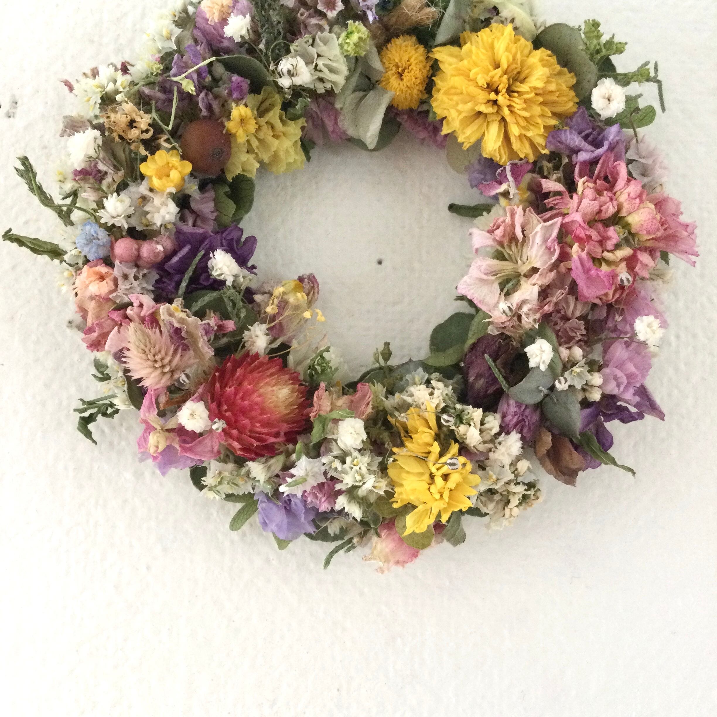 小花のミニリース 12cm ピンク イエロー ドライフラワー 誕生日プレゼント 引っ越し祝い バレンタイン ギフト