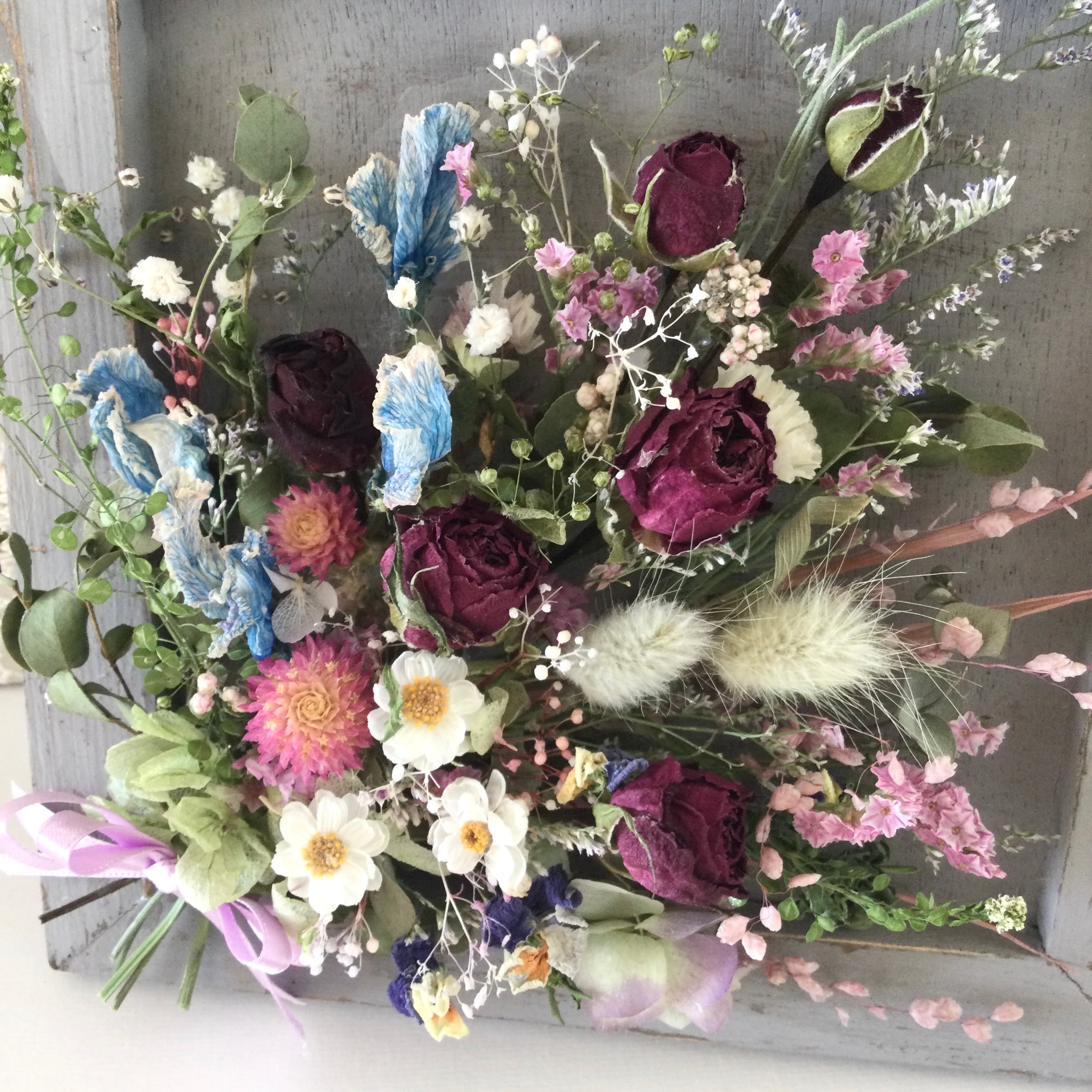ローズ 紫陽花 ユーカリ スターチス かすみ草 ブルーファンタジー 千日紅 スイートピー リングラス ラグラスハニーテール ライスフラワー 花かんざし グリーン リーフ リボン