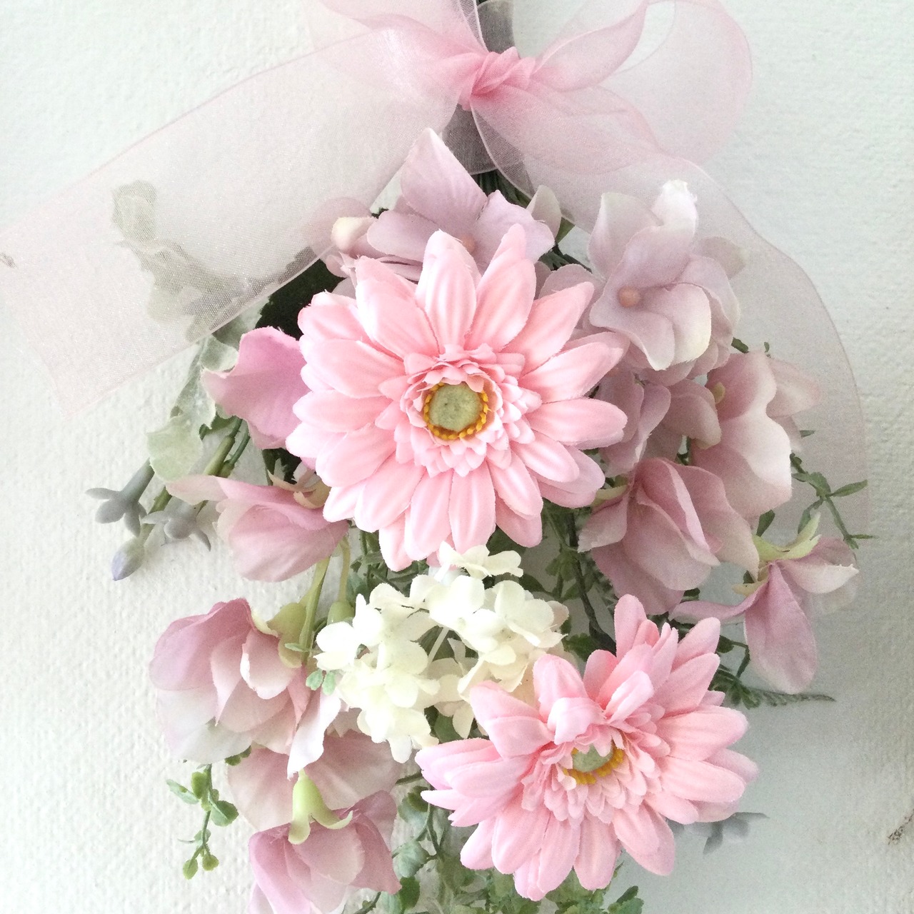 ピンク ガーベラとスイートピーのスワッグ アーティフィシャルフラワー 誕生日プレゼント 引っ越し祝い 記念日 ギフト