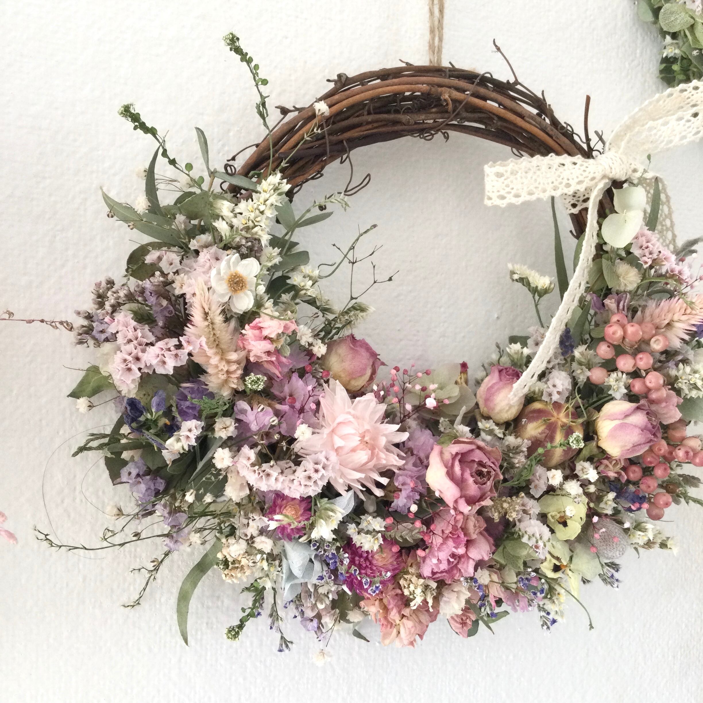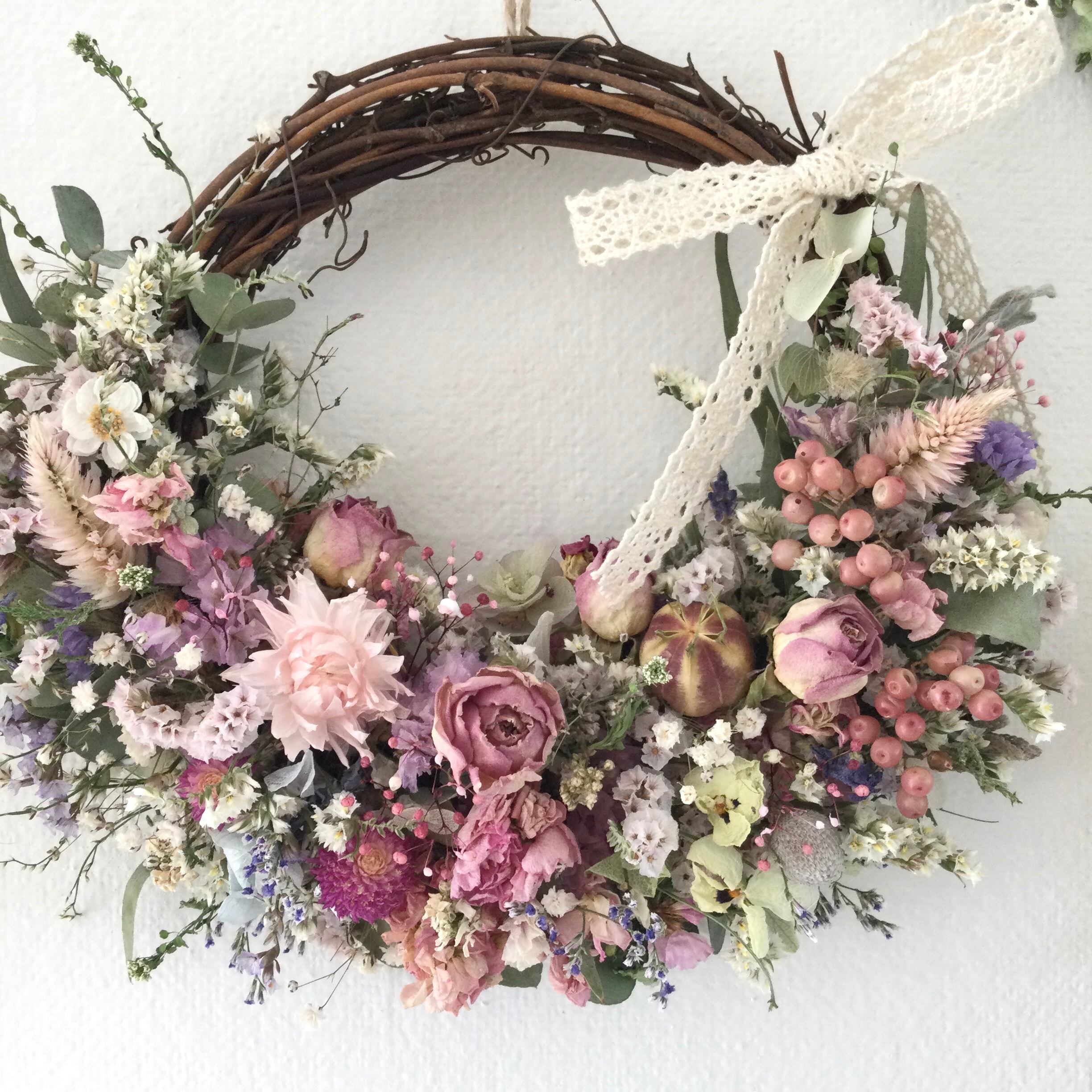 ローズと小花のリース ピンク 24cm 誕生日プレゼント 引っ越し祝い 記念日 ギフト