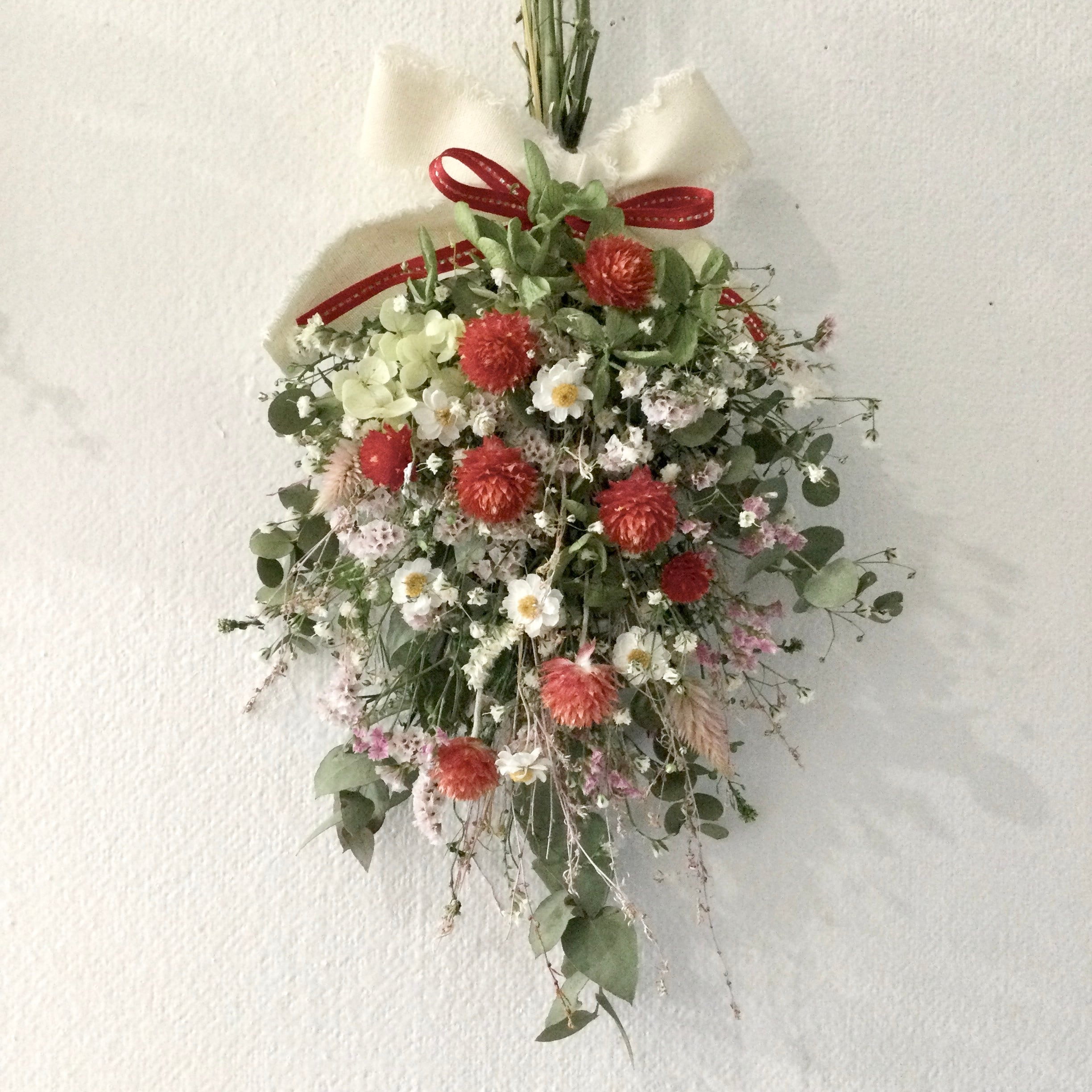 ご予約作品 スワッグ2点 ストロベリーフィールド 千日紅と花かんざし 小花のスワッグ マムのスワッグ ドライフラワー 誕生日プレゼント 引っ越し祝い バレンタイン ギフト