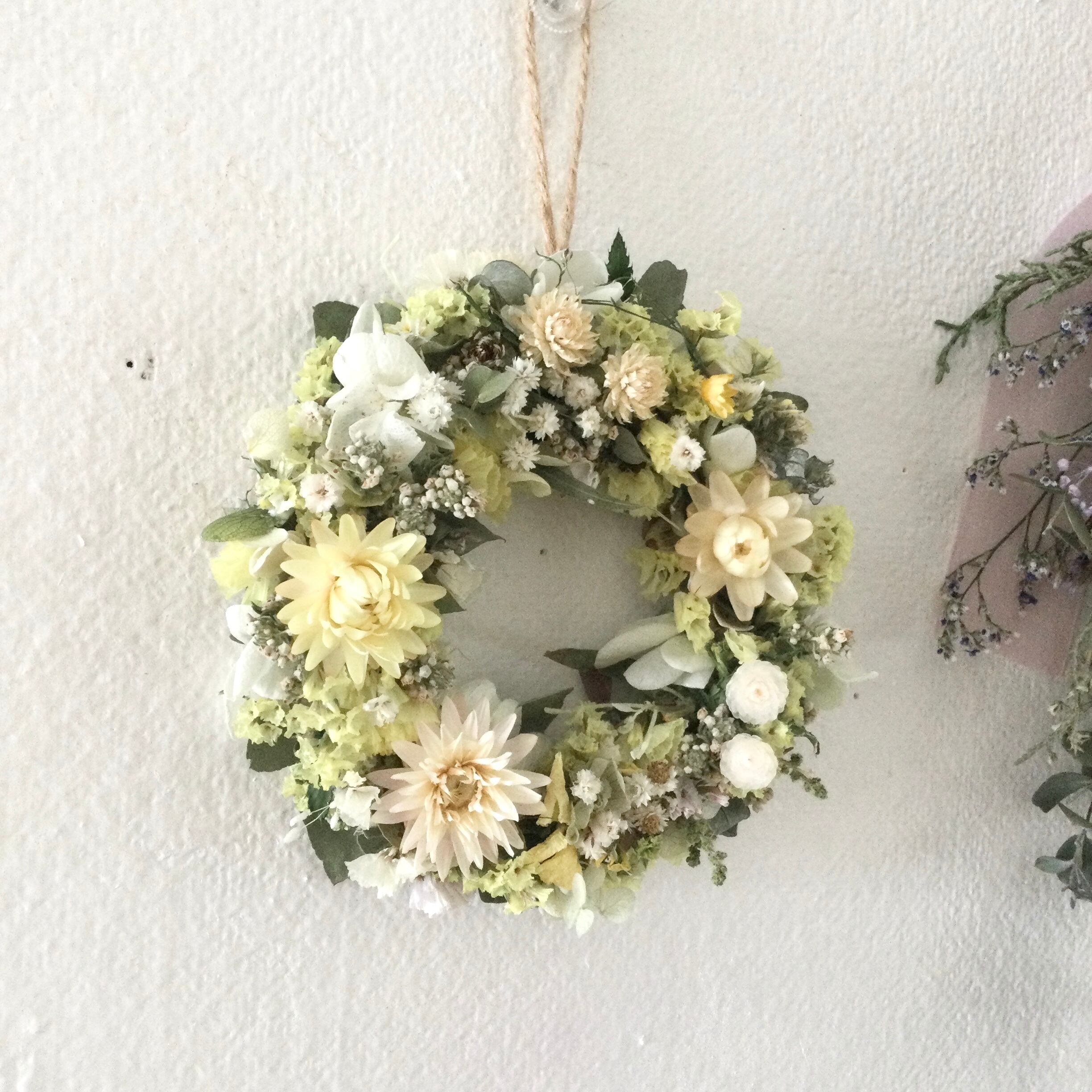 こちらのミニリースシリーズは、その時々あるお花を合わせてお作りしているリースですので再販の予定 オーダーはお受けできません。ご了承ください。