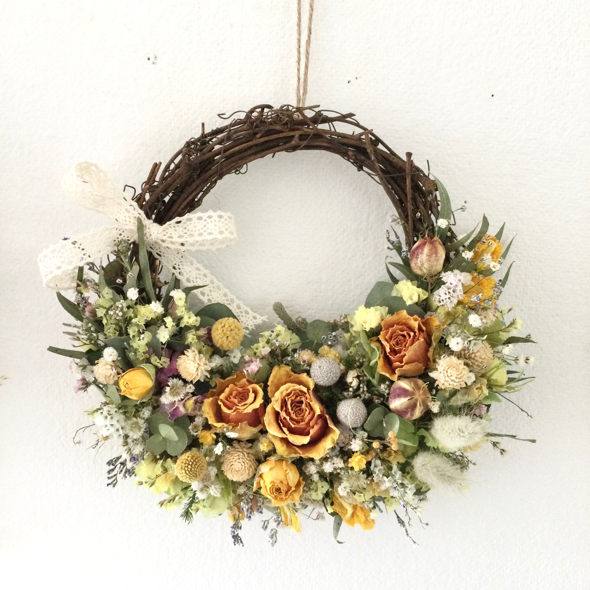 ローズと小花のリース イエロー 22cm 誕生日プレゼント 引っ越し祝い 記念日 ギフト