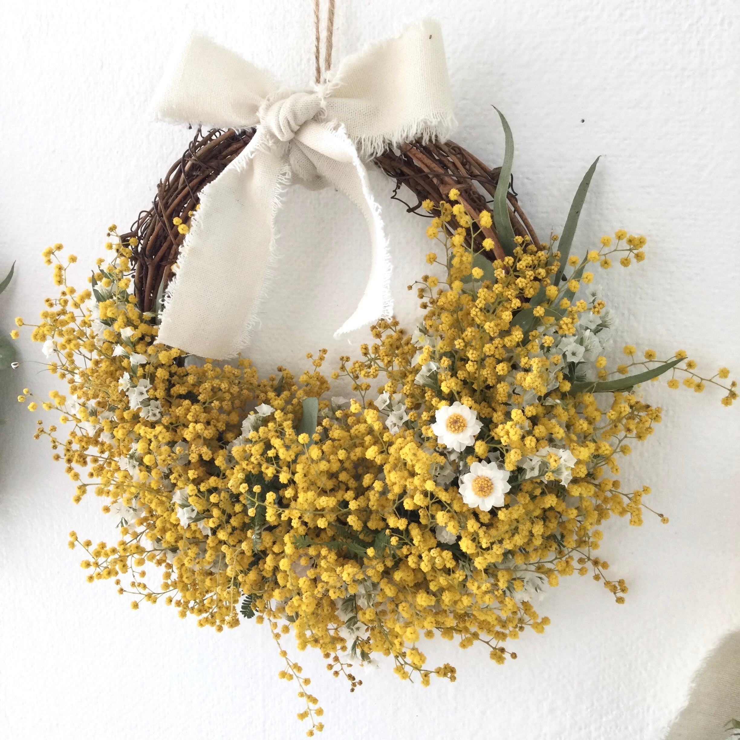 ミモザのリース 22-25cm 誕生日プレゼント 引っ越し祝い 記念日 ギフト