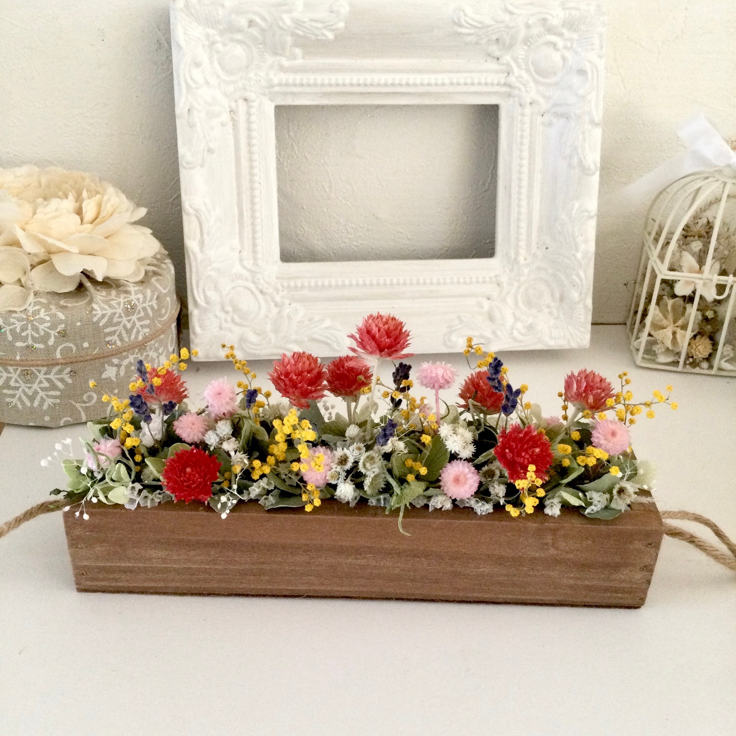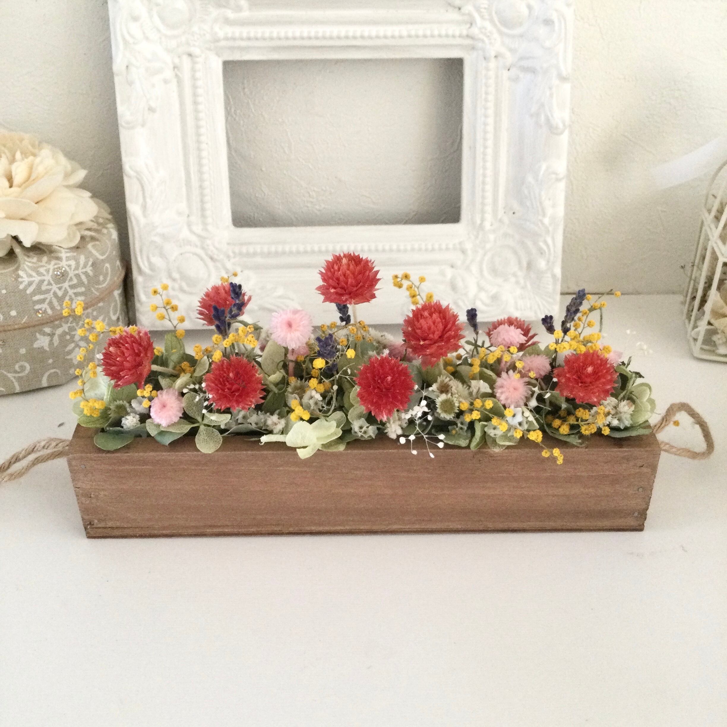ストロベリーフィールド 千日紅と小花のboxアレンジメント ドライフラワー 誕生日プレゼント 引っ越し祝い 記念日 ギフト