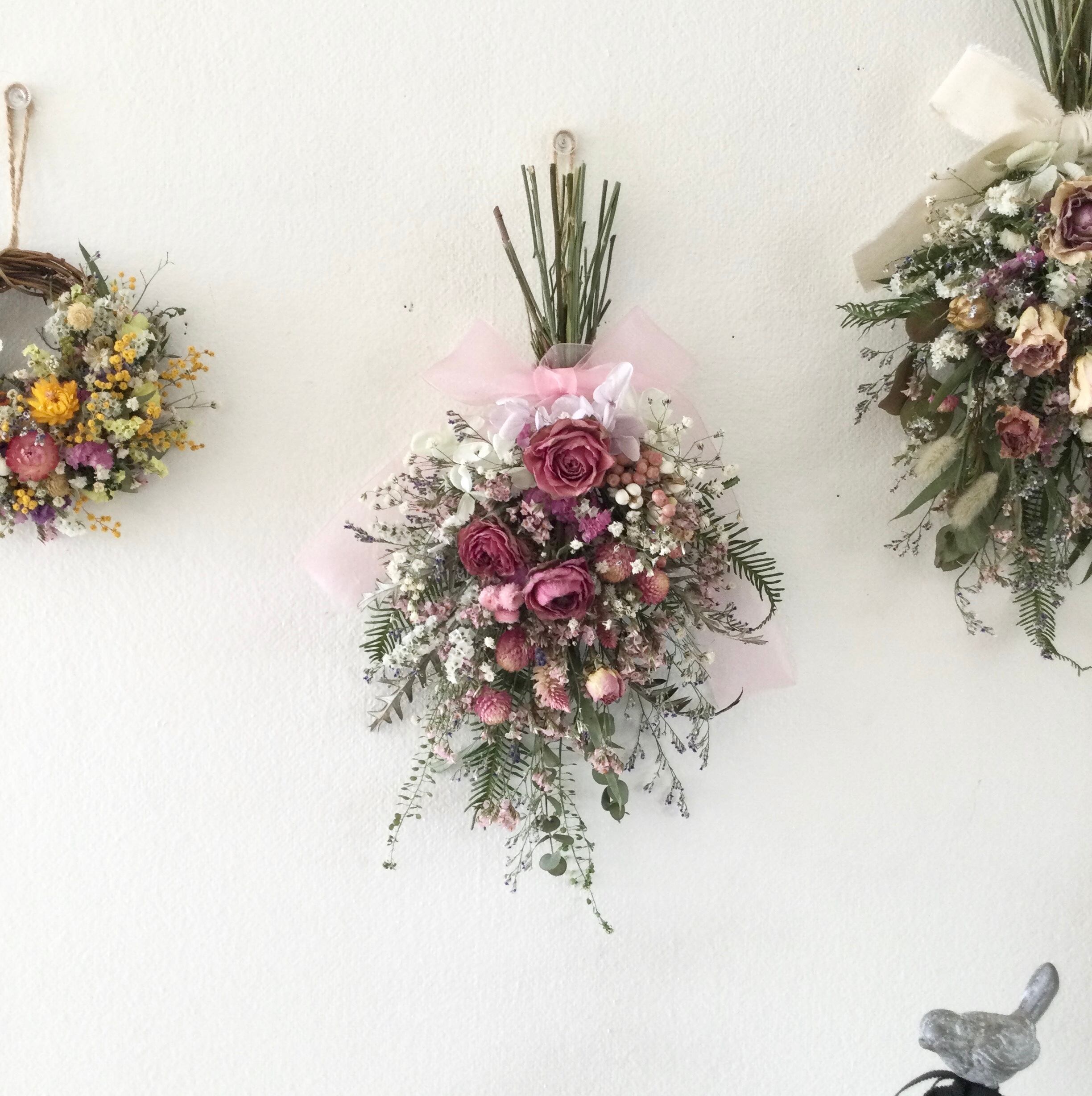 ピンクローズと小花のスワッグ ドライフラワー 誕生日プレゼント 引っ越し祝い 記念日 ギフト