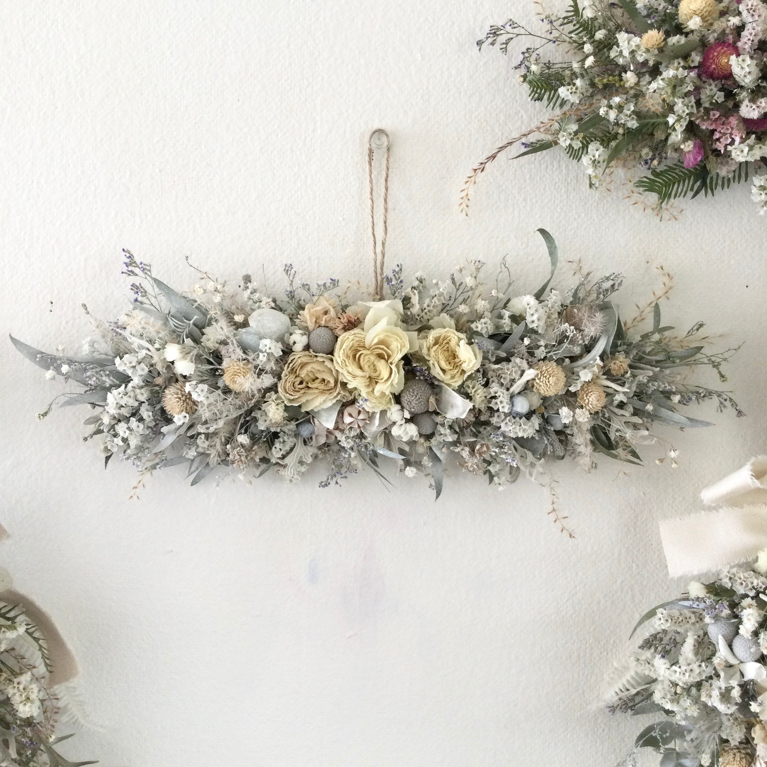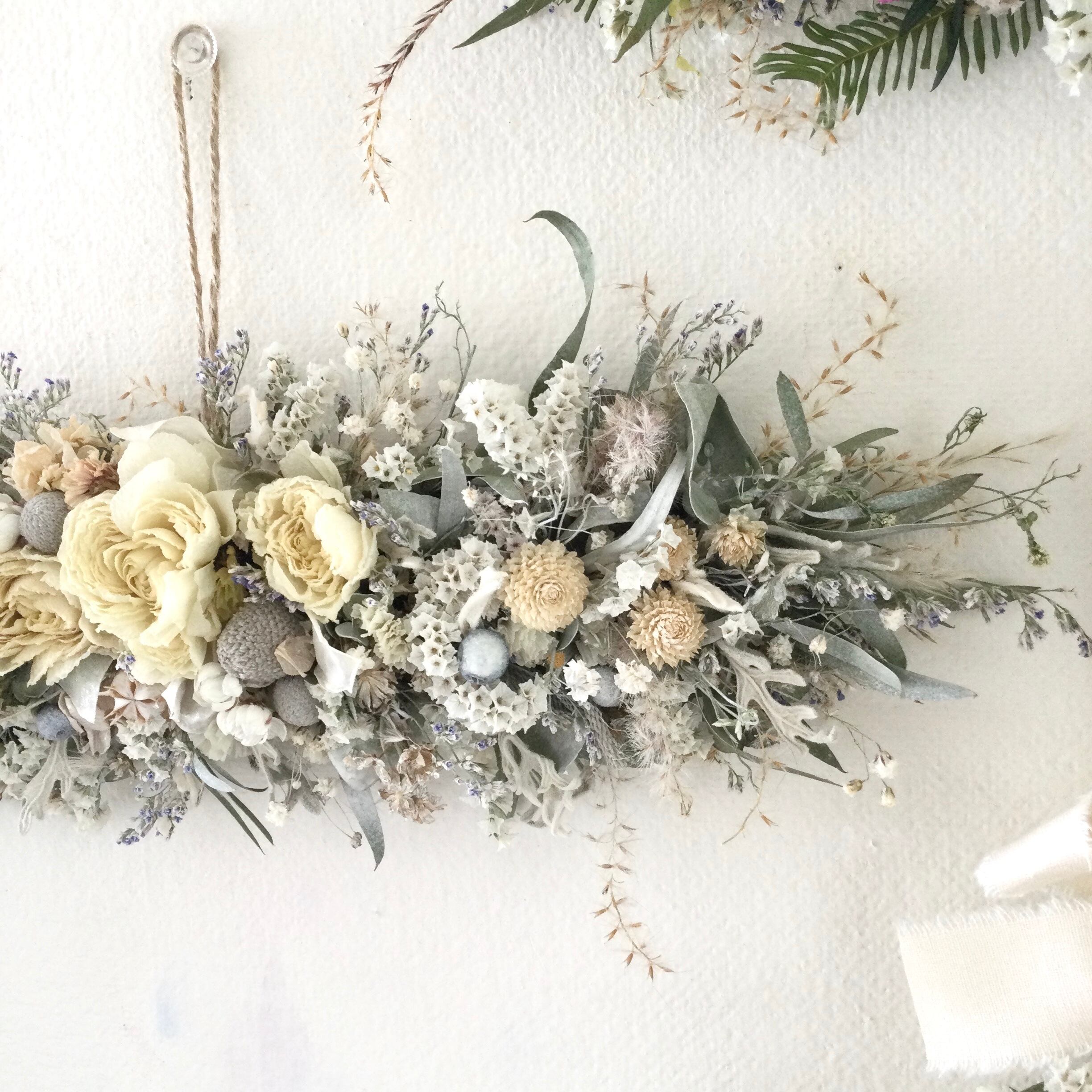ラナンキュラスと小花の横型スワッグ ガーランド ドライフラワー 誕生日プレゼント 引っ越し祝い 記念日 ギフト