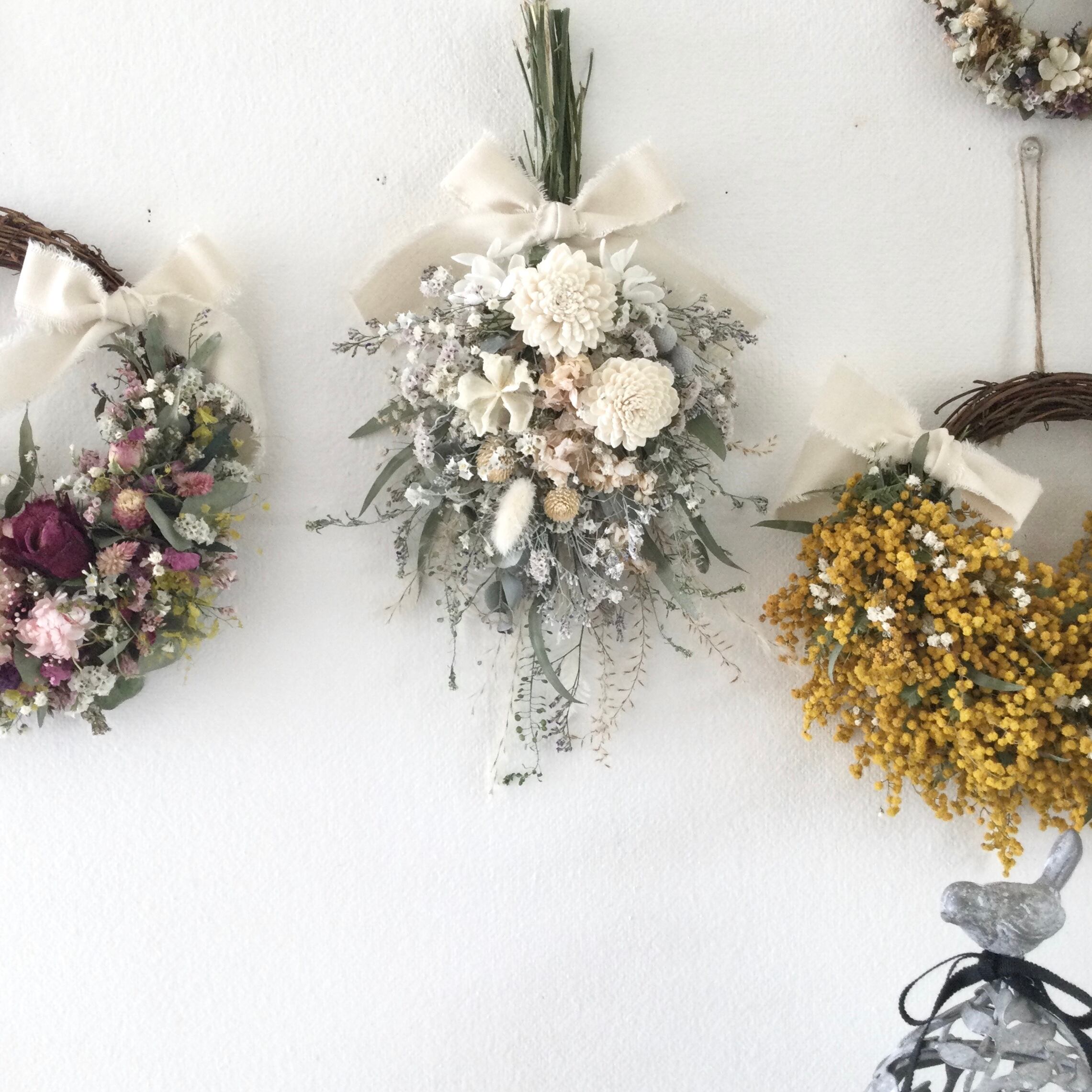 ソラダリアと小花のスワッグ ナチュラルホワイト ドライフラワー 誕生日プレゼント 引っ越し祝い 記念日 ギフト