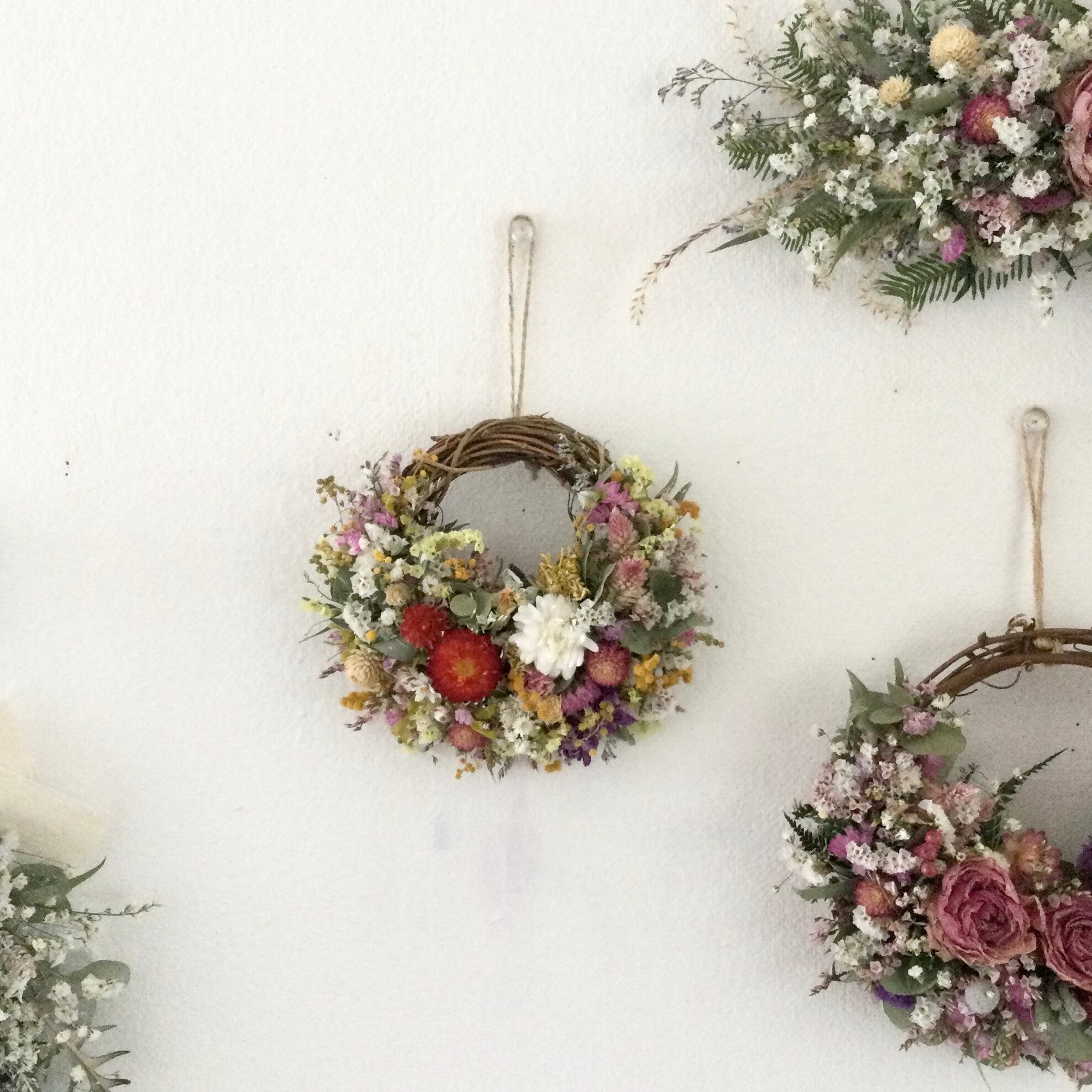 ヘリクリサム ミモザ 小花のミニリース ドライフラワー 16-7cm 誕生日プレゼント 引っ越し祝い 記念日 ギフト