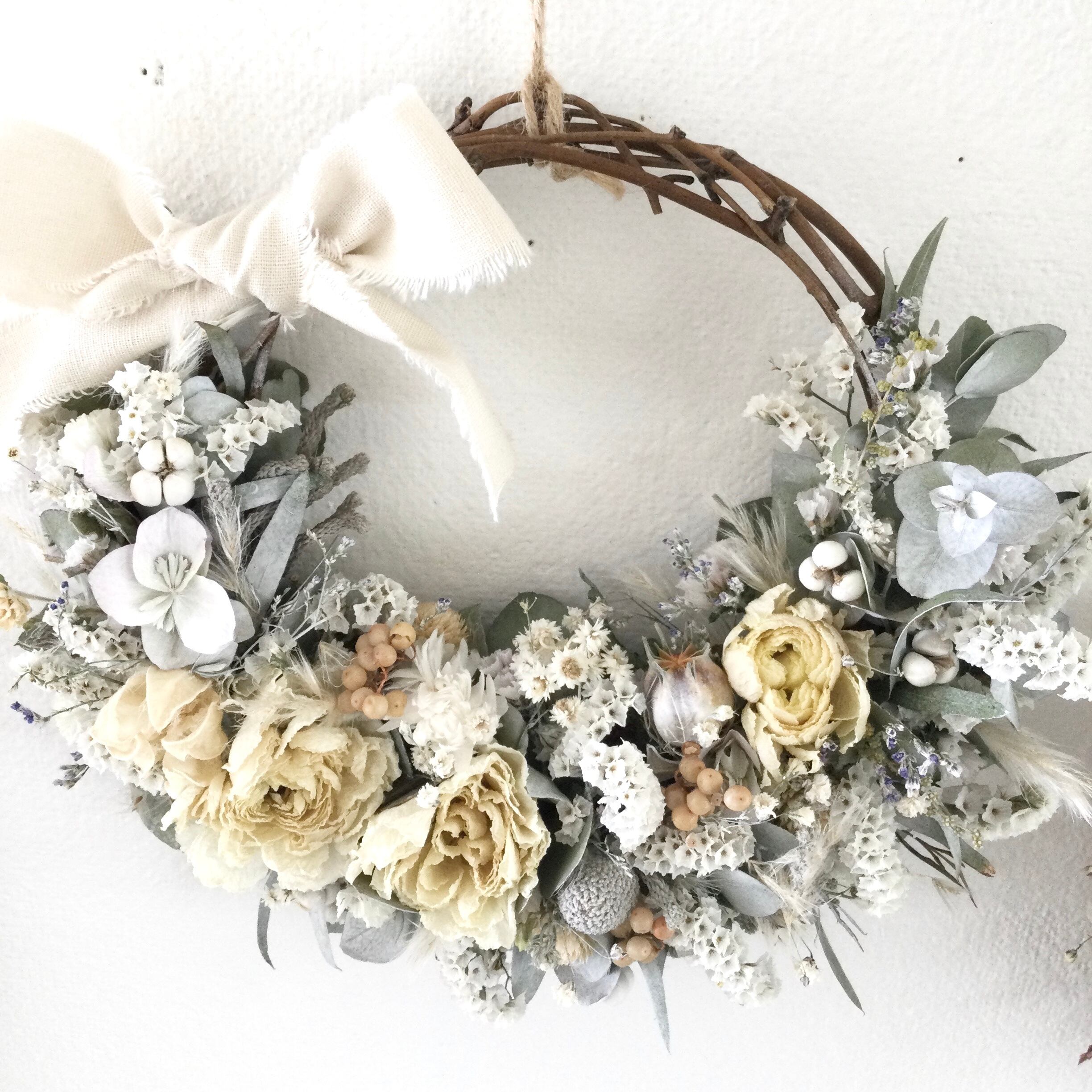 ラナンキュラスとローズ 小花のリース シャビー ホワイト 24cm 誕生日プレゼント 引っ越し祝い 記念日 ギフト