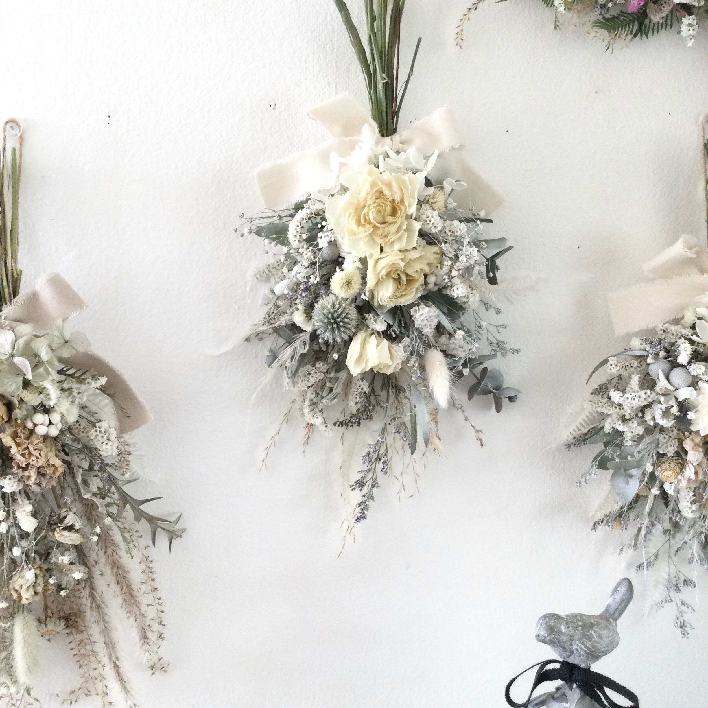 ラナンキュラスと小花のスワッグ ナチュラルホワイト ドライフラワー 誕生日プレゼント 引っ越し祝い 記念日 母の日ギフト
