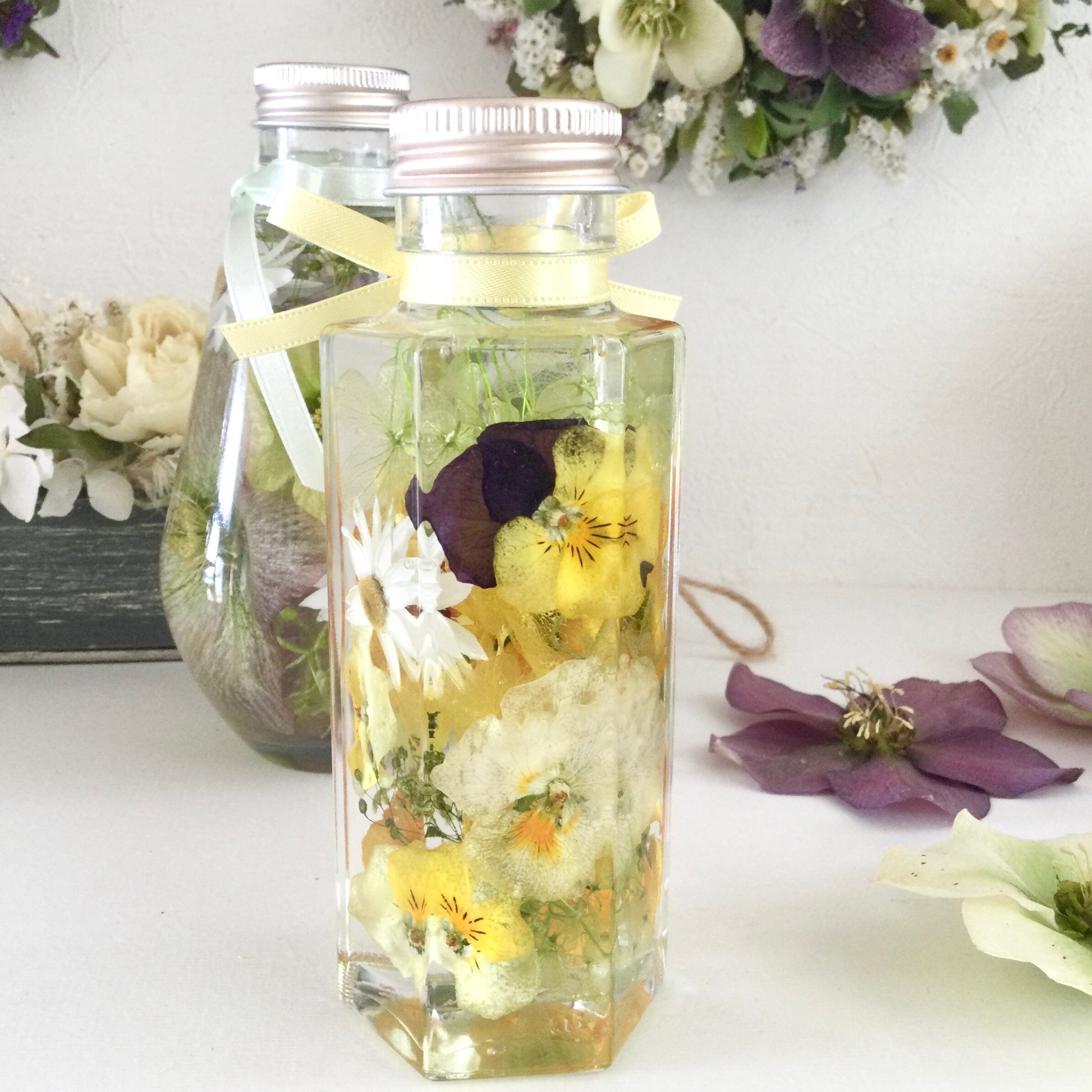 お花はオイルの中に浮いている状態ですので、配送時の状況によりお花の位置が動いて変わってしまう場合があります。