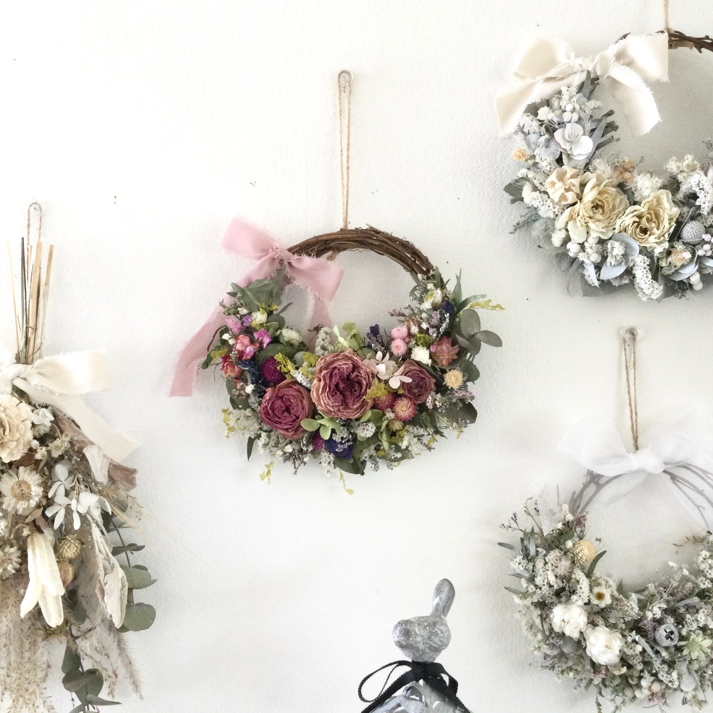 ローズと小花のリース ピンク 24cm 誕生日プレゼント 引っ越し祝い 記念日 母の日 ギフト