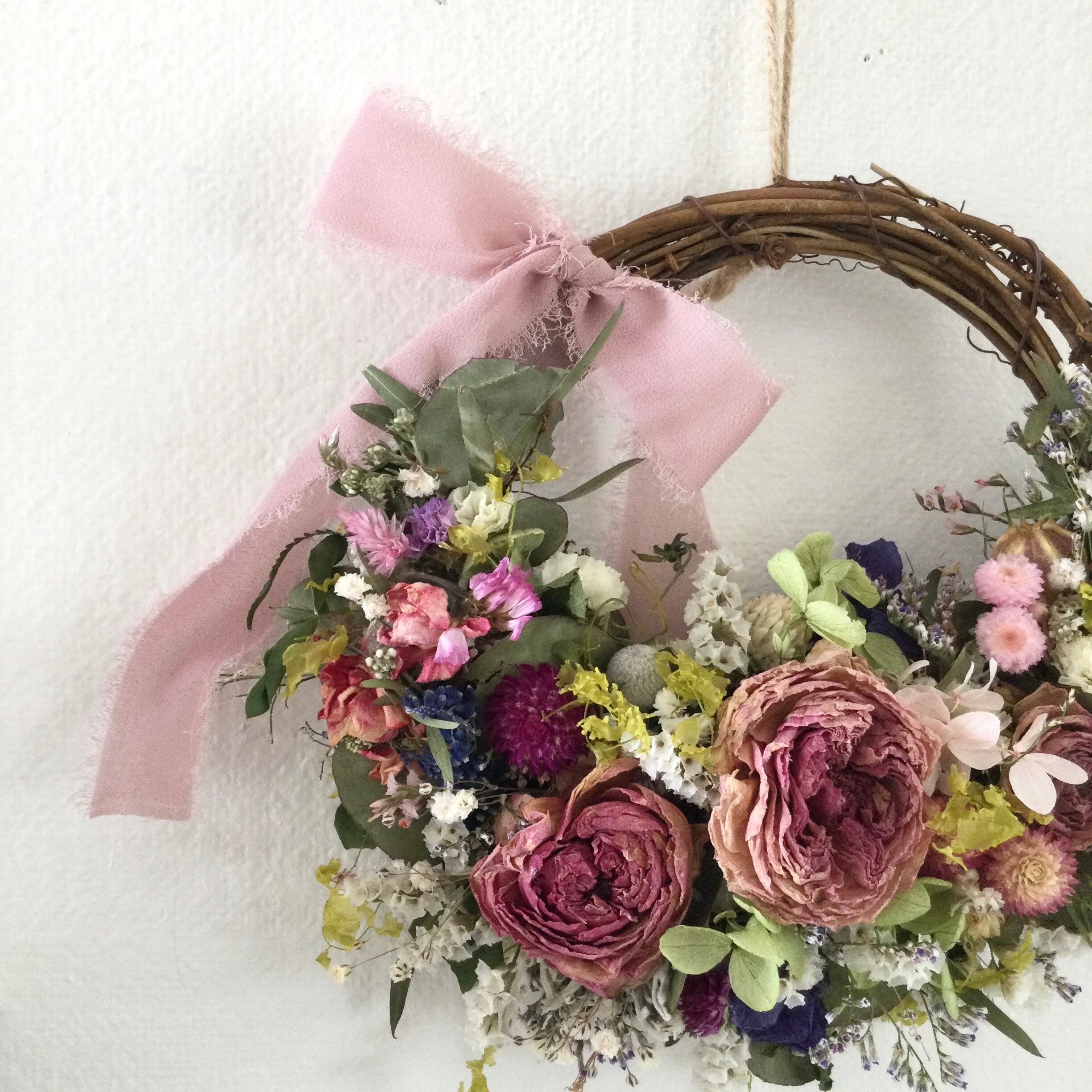 ピンクのローズ ヘリクリサム スターチス 千日紅などの小さなお花をたっぷり使いました。