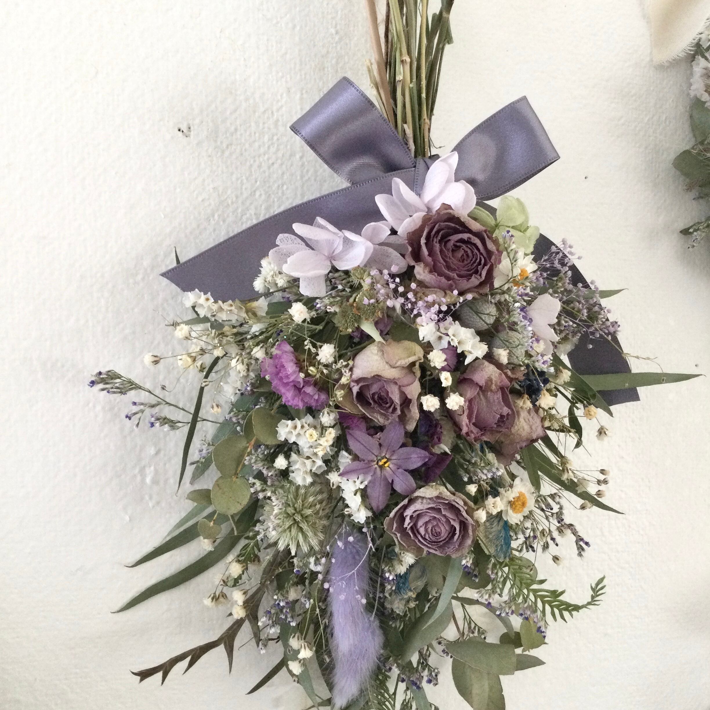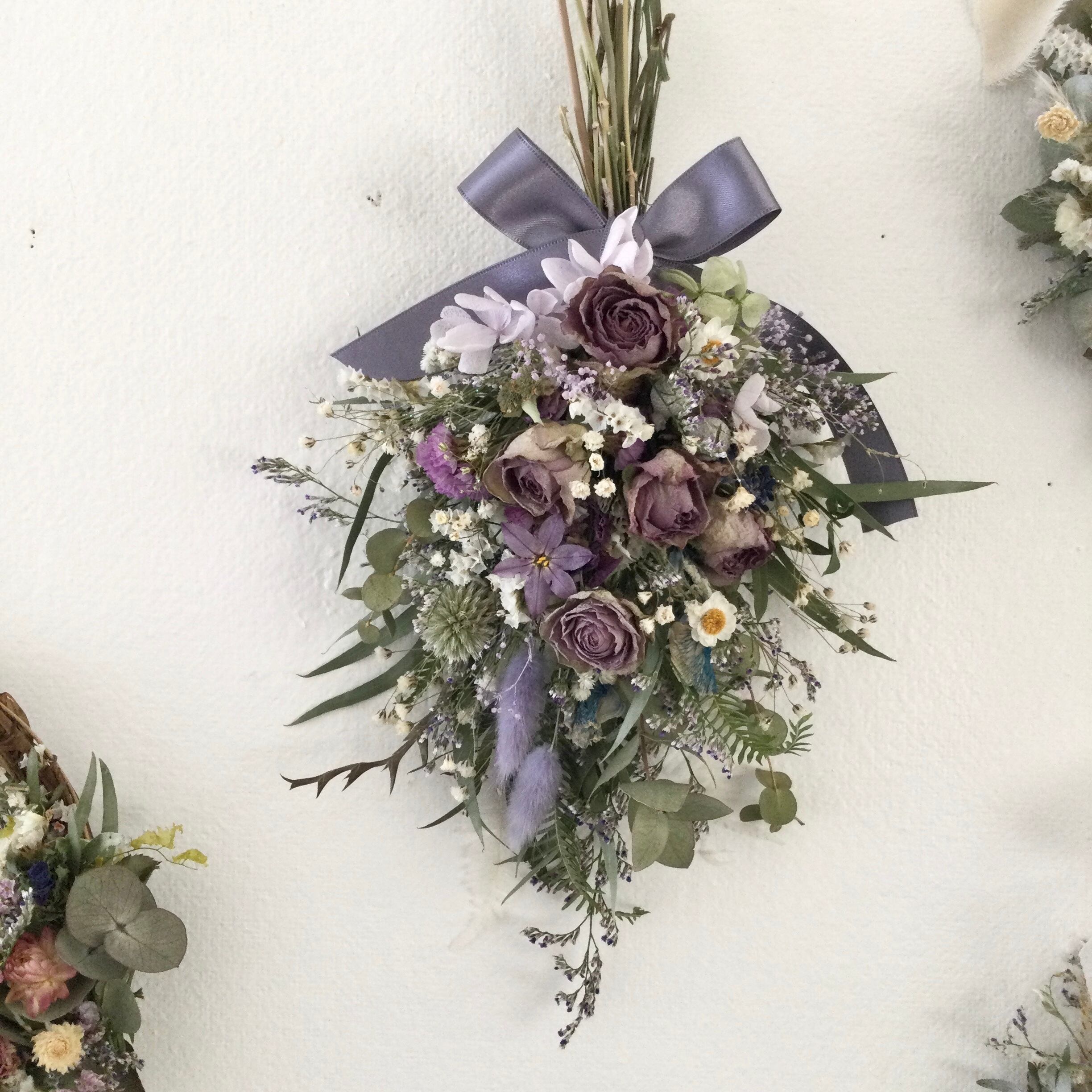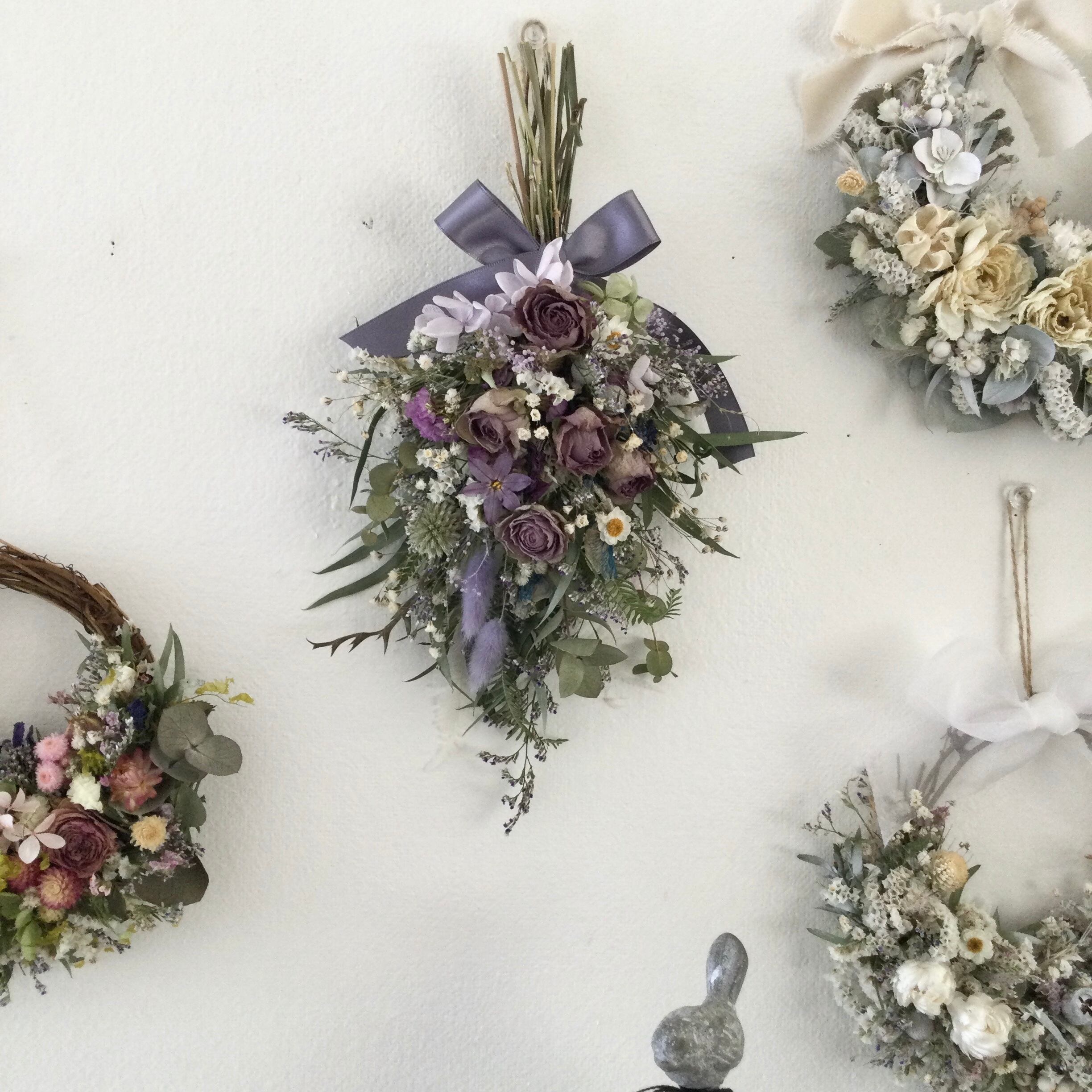 ローズと小花のナチュラルスワッグ パープル ドライフラワー 誕生日プレゼント 引っ越し祝い 記念日 母の日ギフト