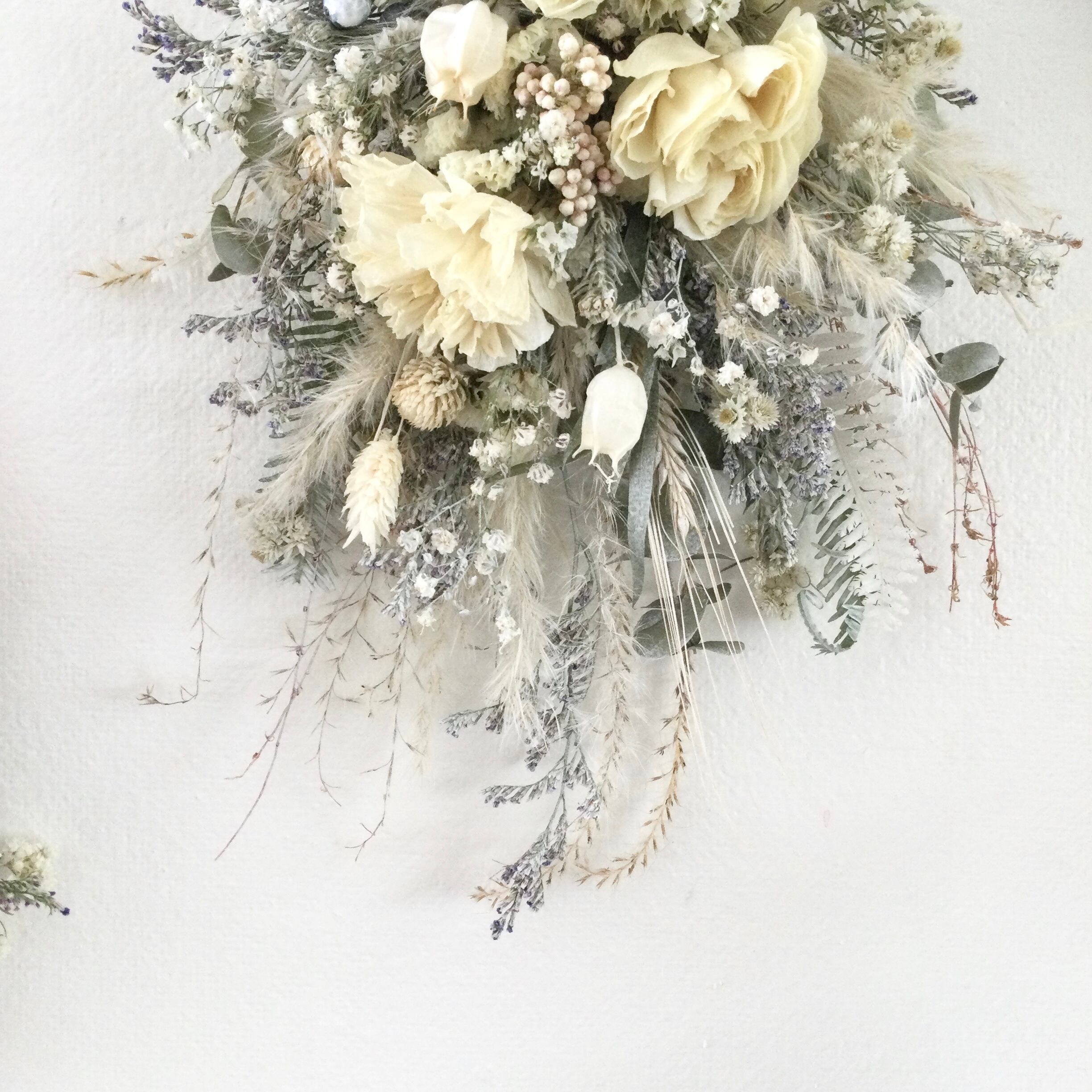 ラナンキュラスと小花のスワッグ ナチュラルホワイト ドライフラワー 誕生日プレゼント 引っ越し祝い 記念日 母の日ギフト