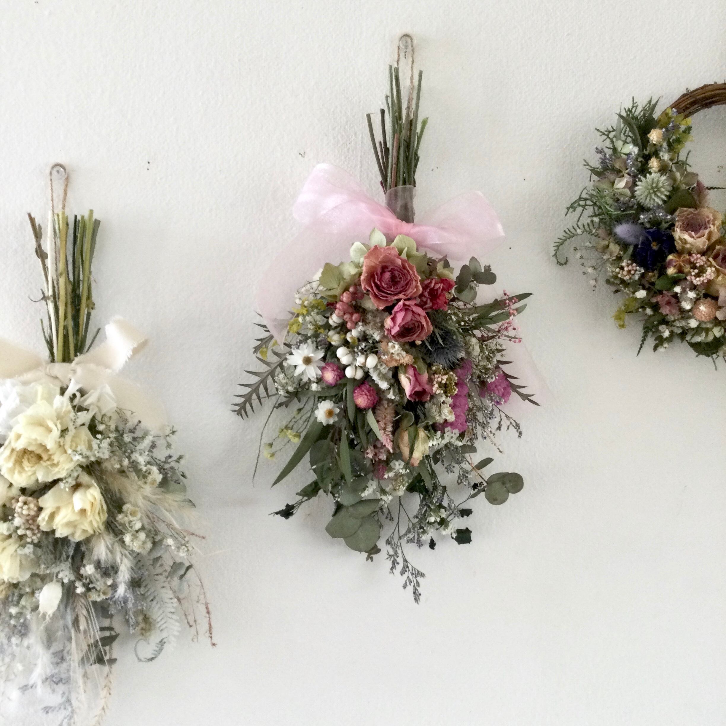 ローズと小花のナチュラルスワッグ ピンク ドライフラワー 誕生日プレゼント 引っ越し祝い 記念日 母の日ギフト