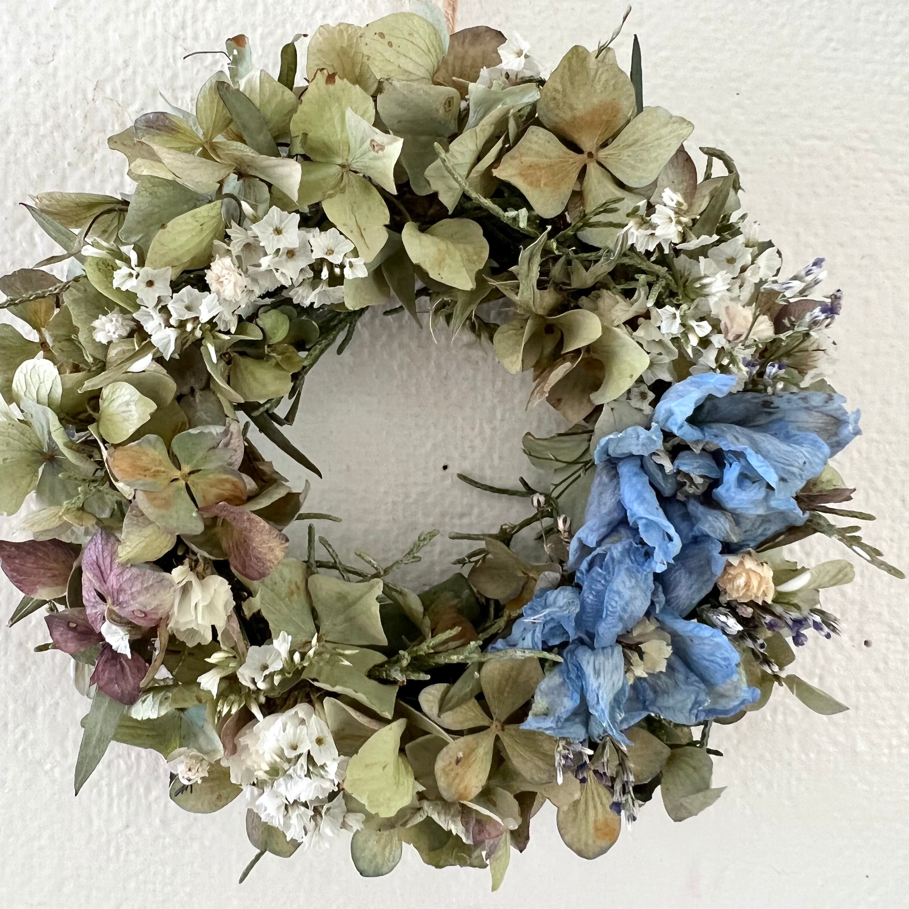 紫陽花のミニリース 13cm ドライフラワー 誕生日プレゼント 引っ越し祝い 記念日 母の日 ギフト