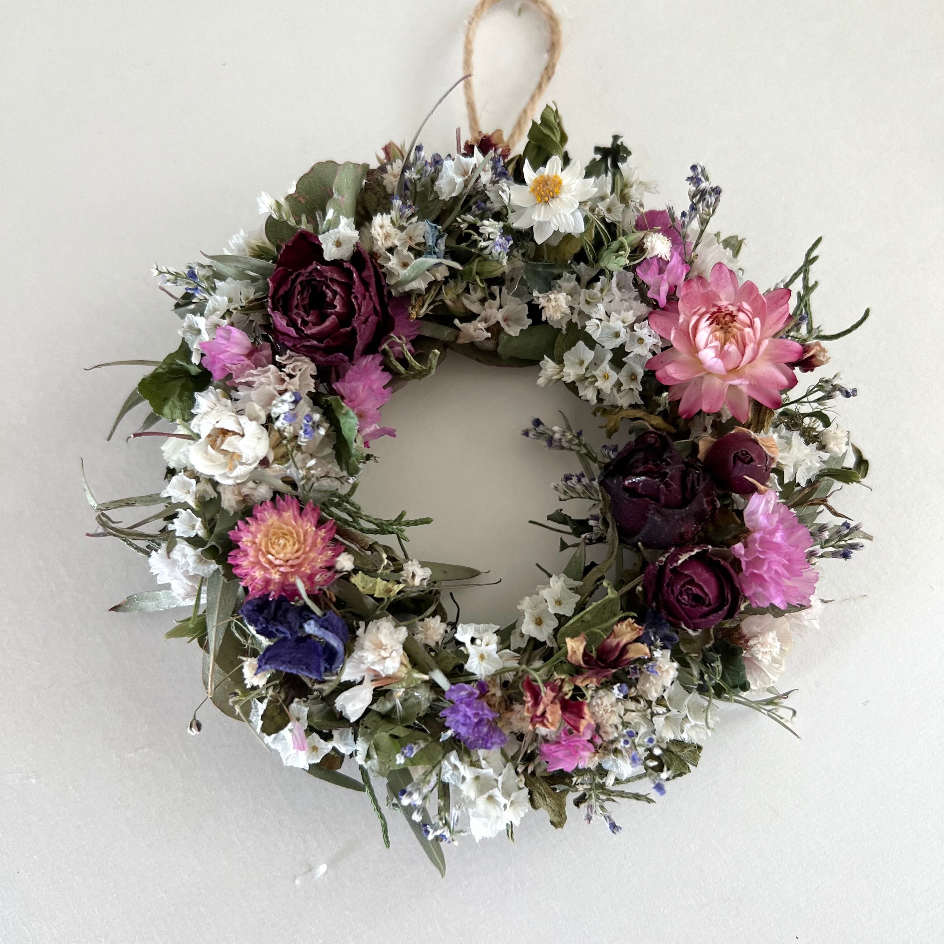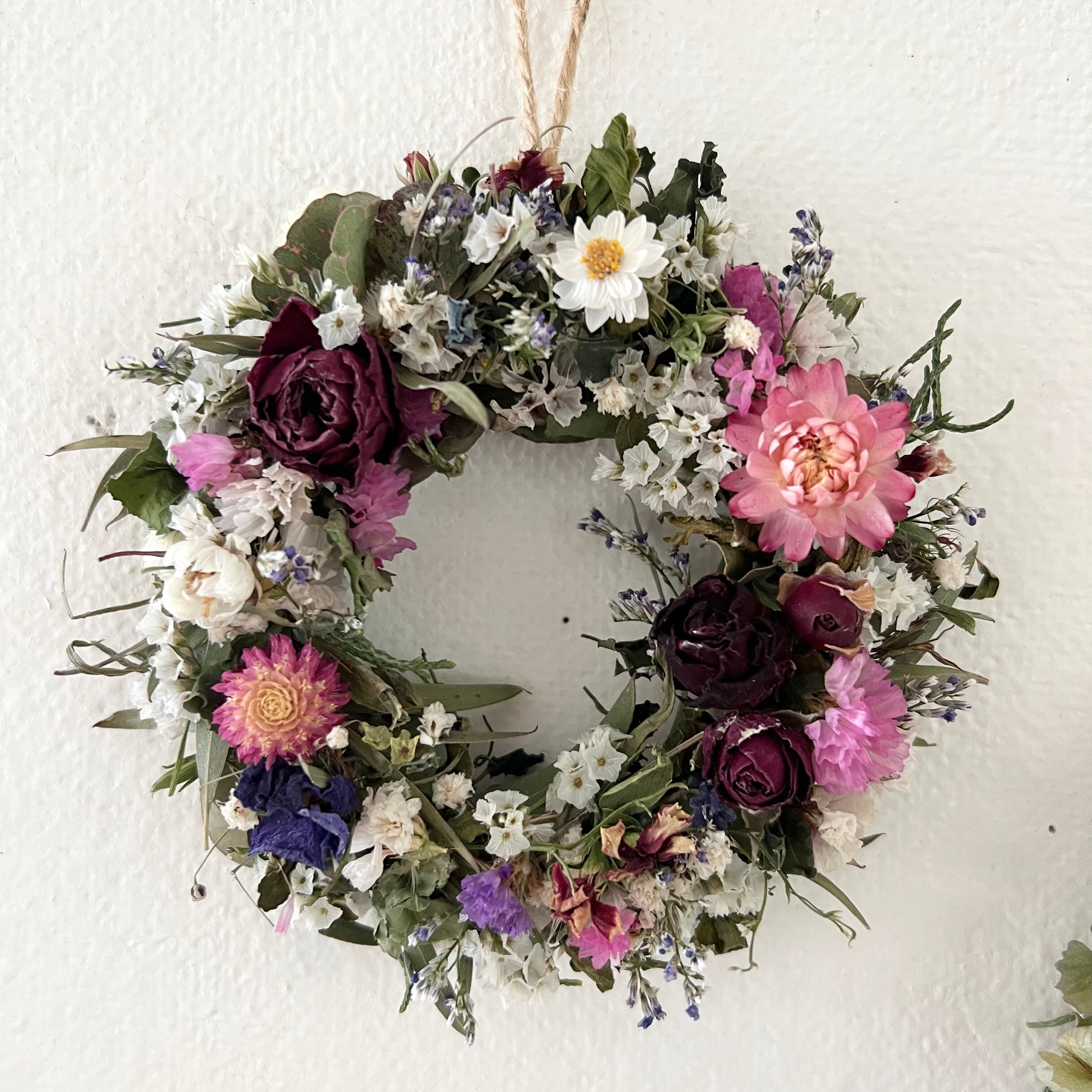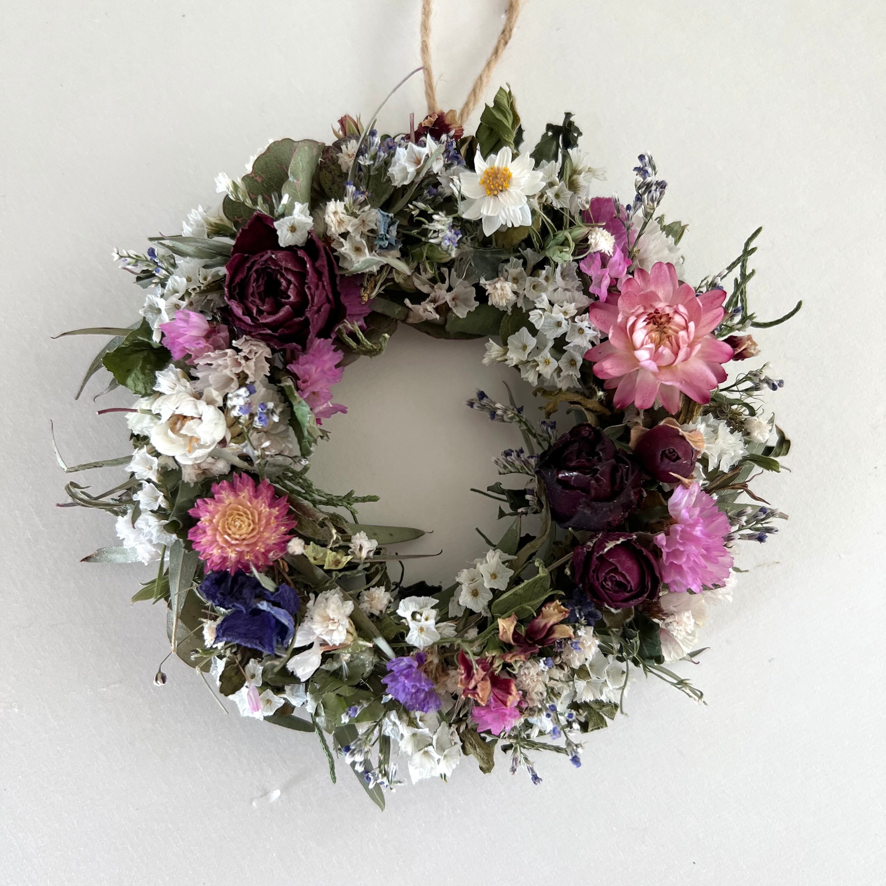 ローズと小花のミニリース 13cm ドライフラワー 誕生日プレゼント 引っ越し祝い 記念日 ギフト