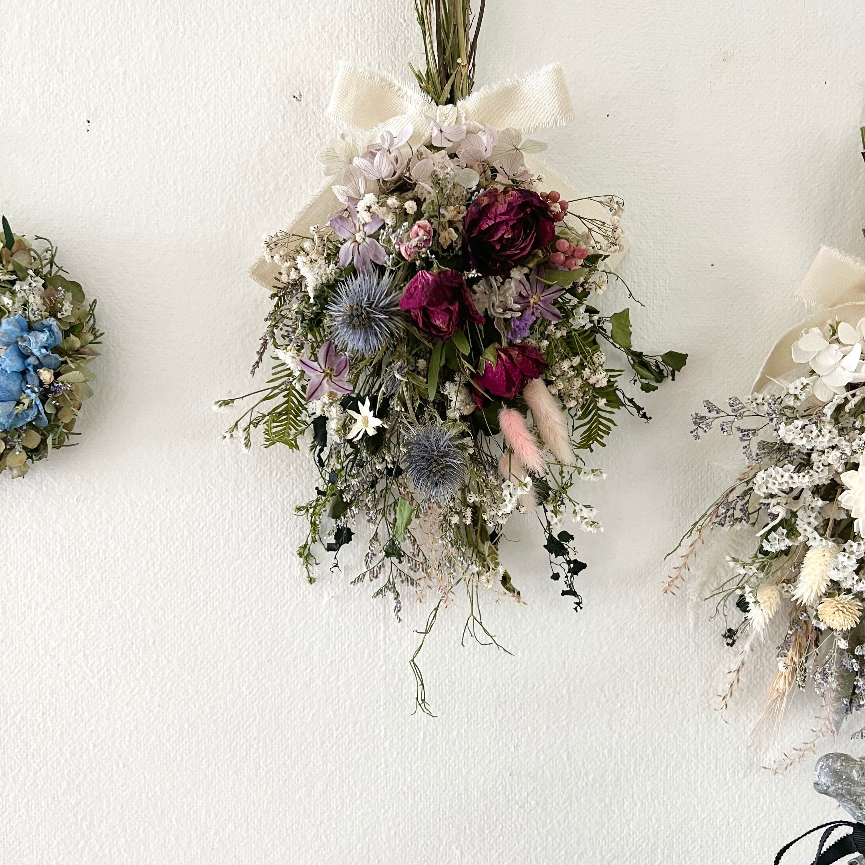 ローズと小花のナチュラルスワッグ ドライフラワー 誕生日プレゼント 引っ越し祝い 記念日 ギフト