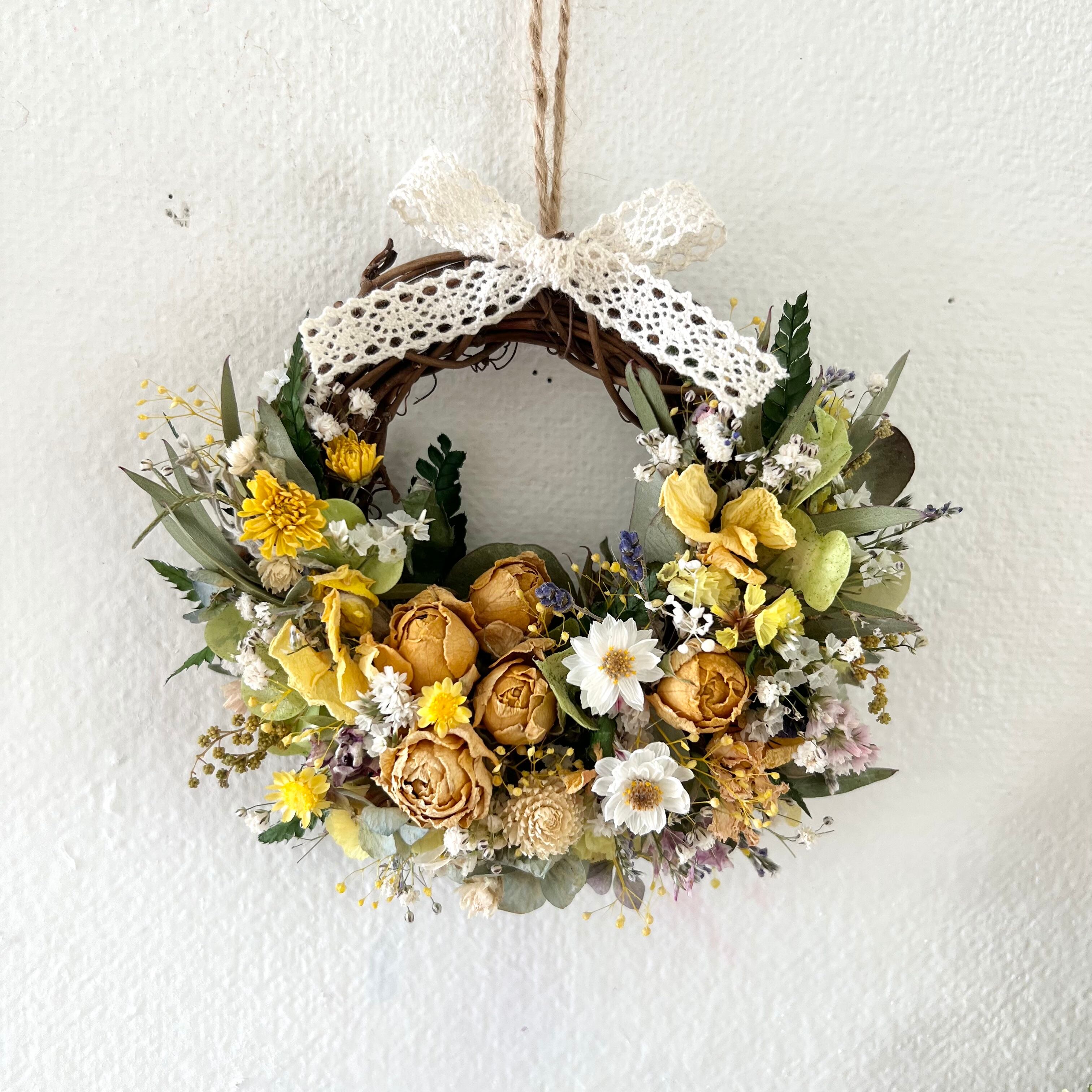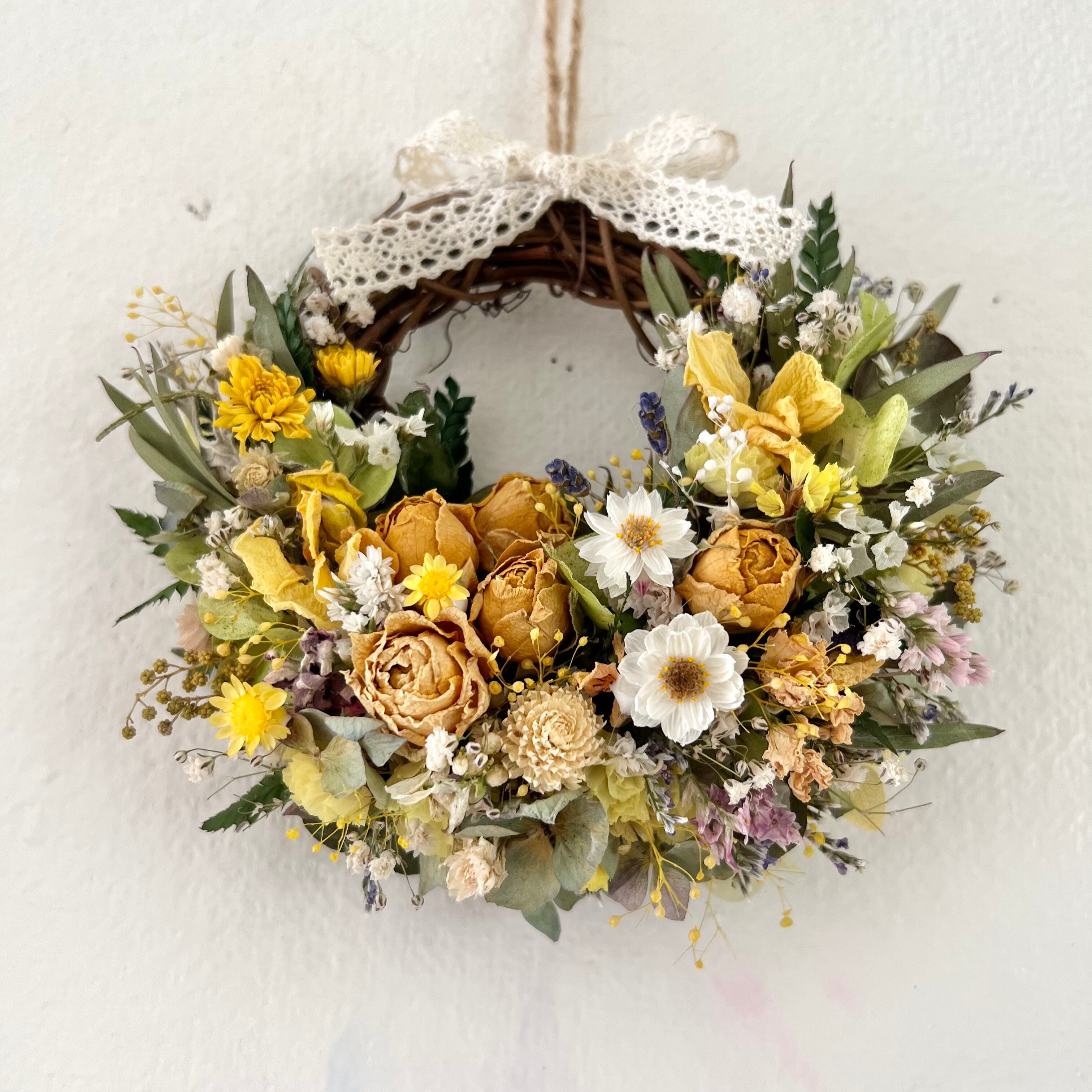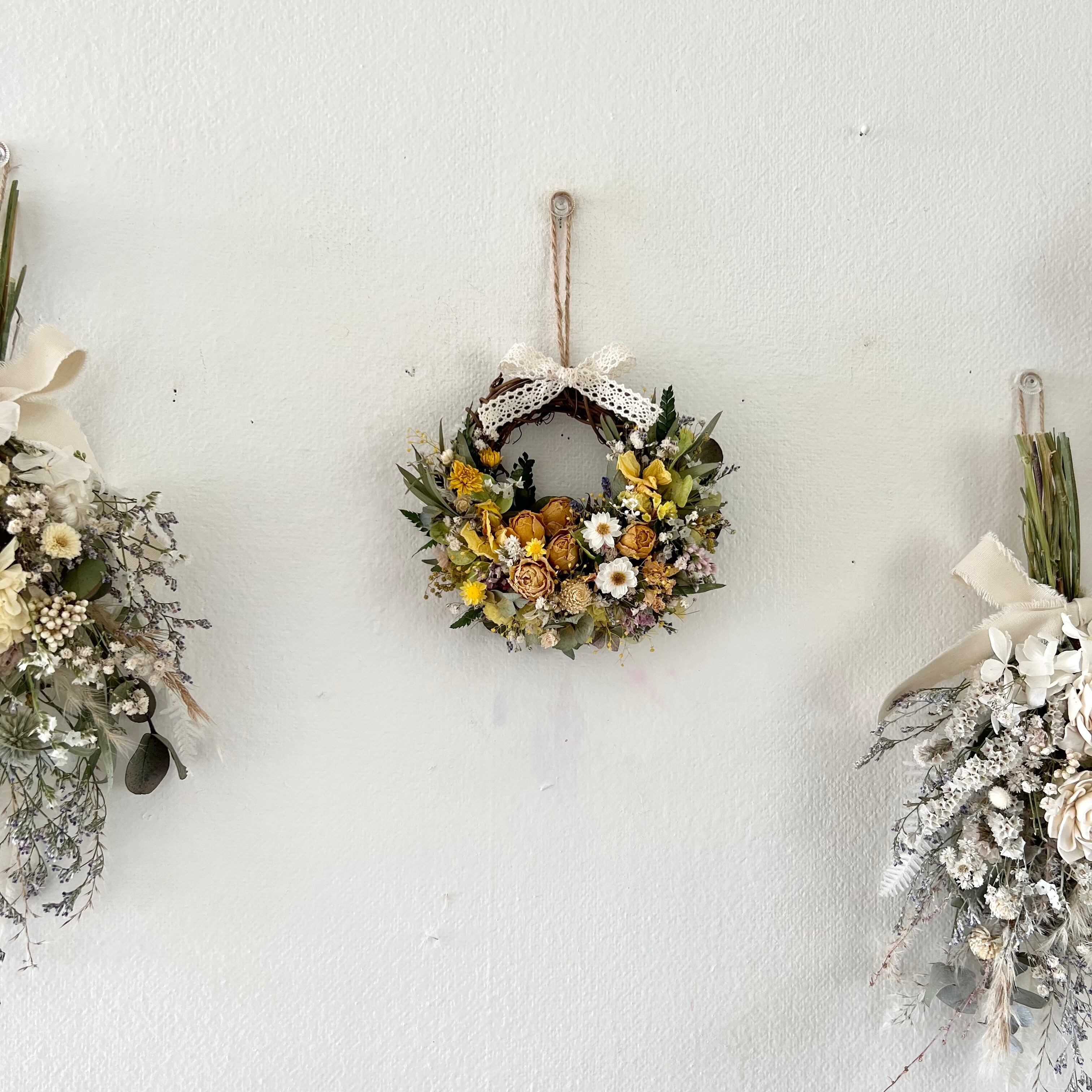 ローズと小花のミニリース 15cm ドライフラワー 誕生日プレゼント 引っ越し祝い 記念日 ギフト