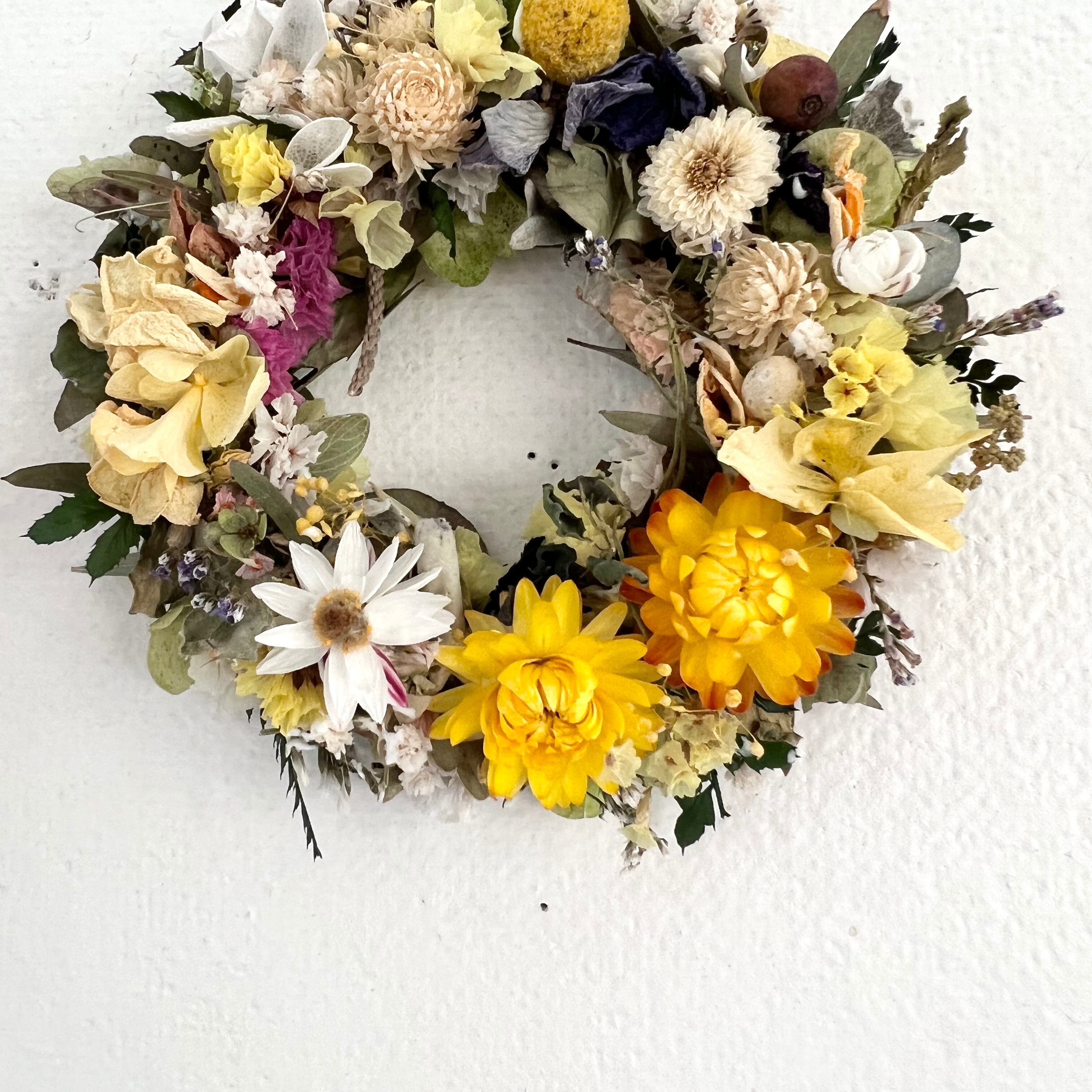 ヘリクリサムと小花のミニリース 13cm ドライフラワー 誕生日プレゼント 引っ越し祝い 記念日 ギフト