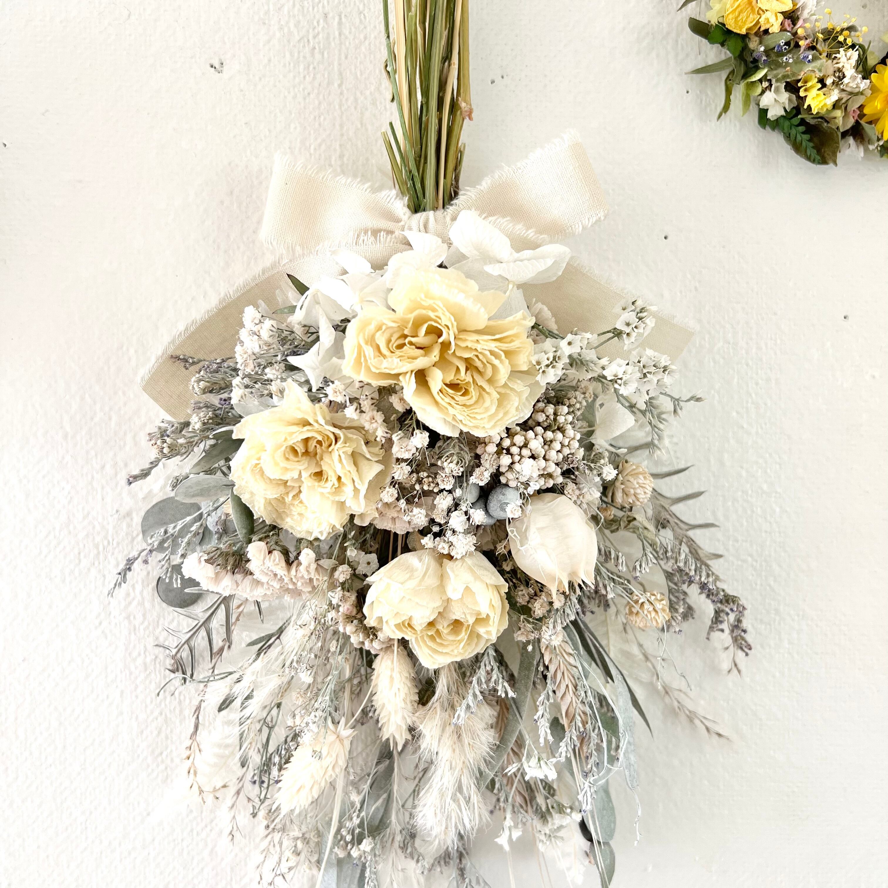 ラナンキュラスと小花のスワッグ ナチュラルホワイト ドライフラワー 誕生日プレゼント 引っ越し祝い 記念日 ギフト