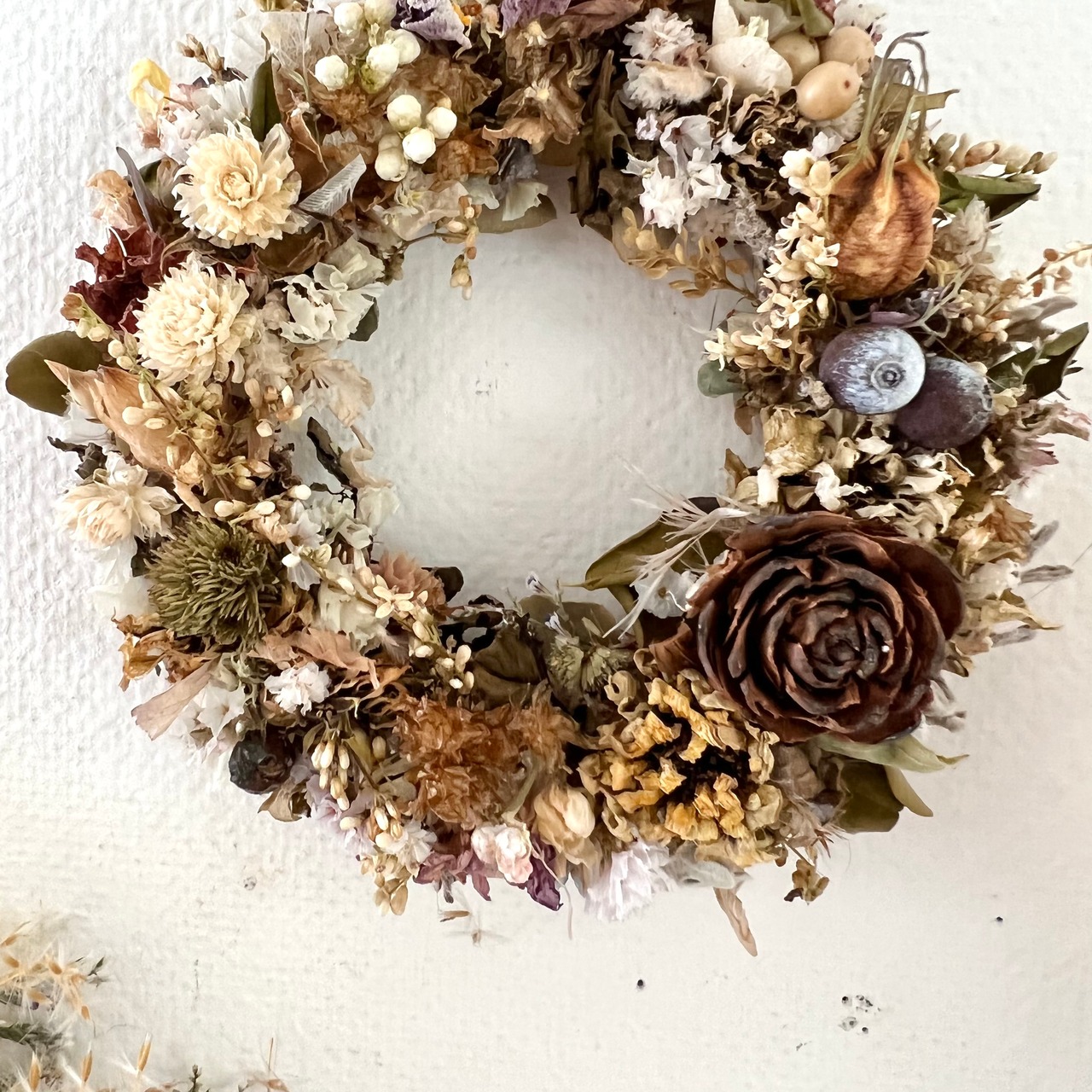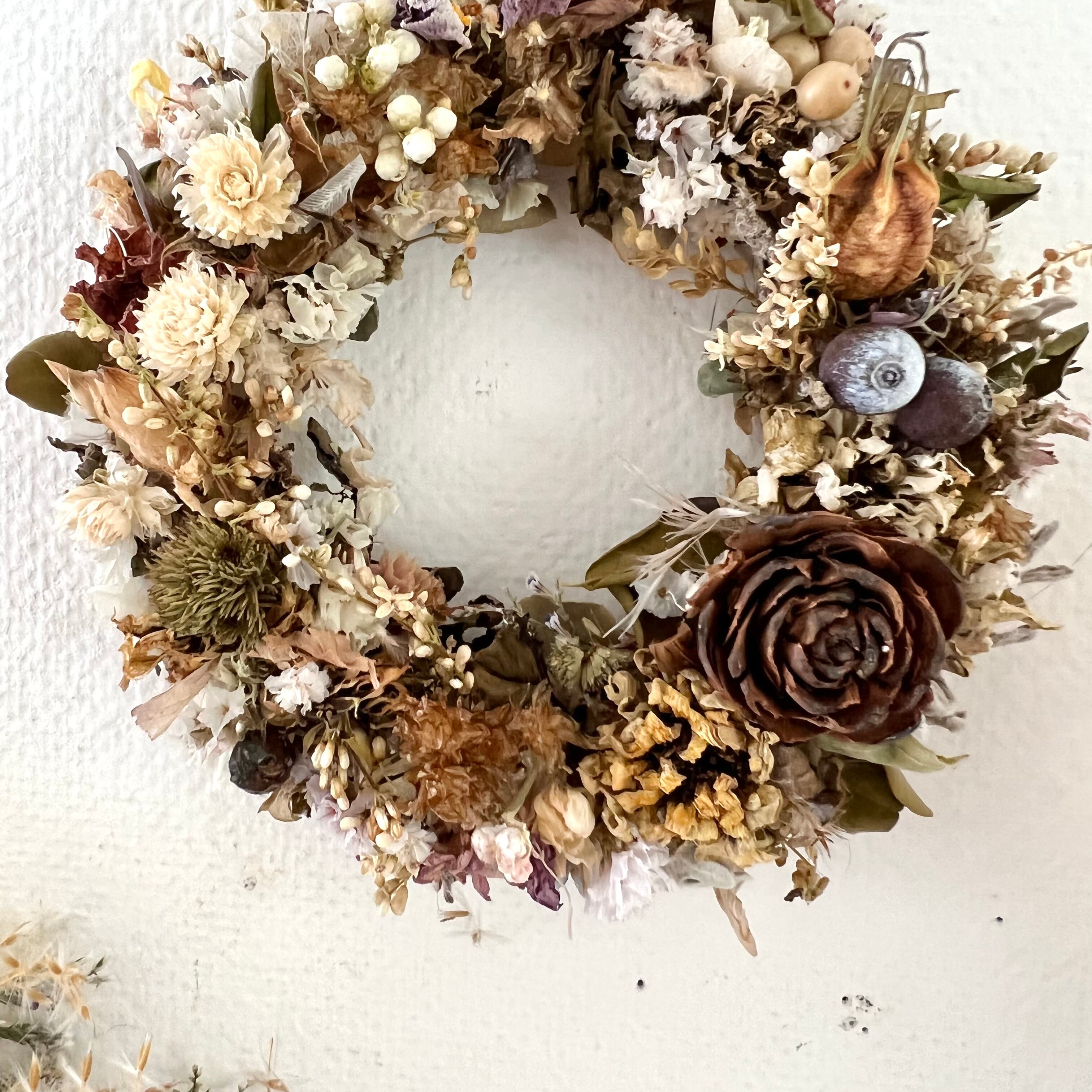 こちらのミニリースシリーズは、その時々あるお花を合わせてお作りしているリースですので再販の予定 オーダーはお受けできません。ご了承ください。