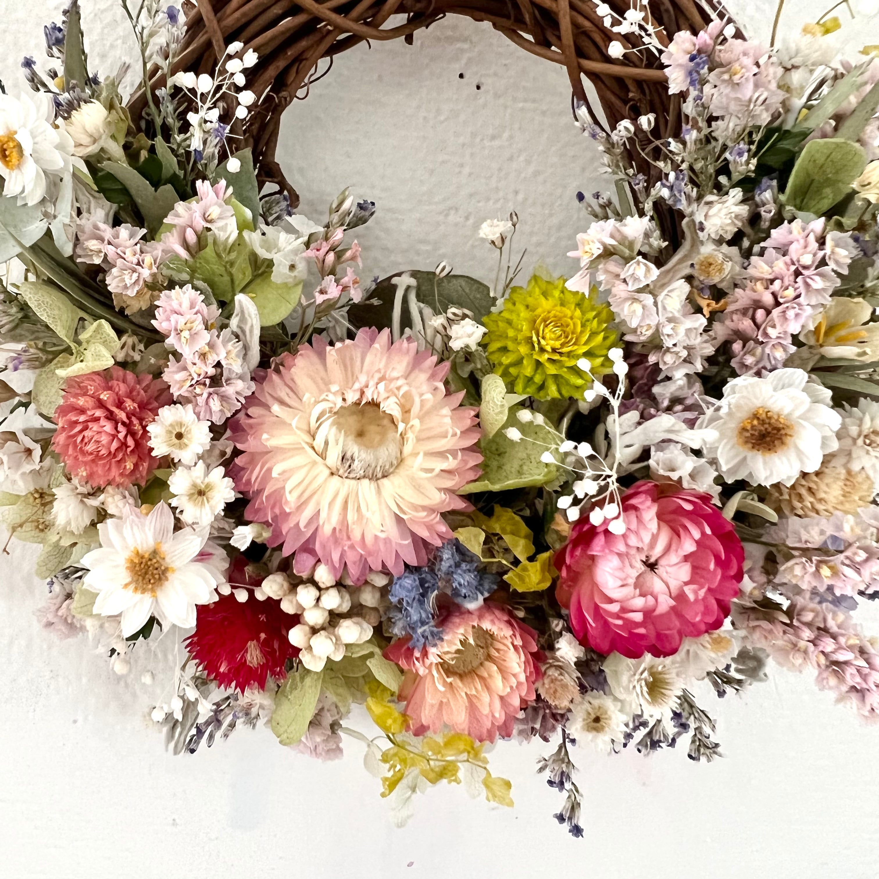 ヘリクリサムと小花のミニリース ドライフラワー 誕生日プレゼント 引っ越し祝い 記念日 ギフト