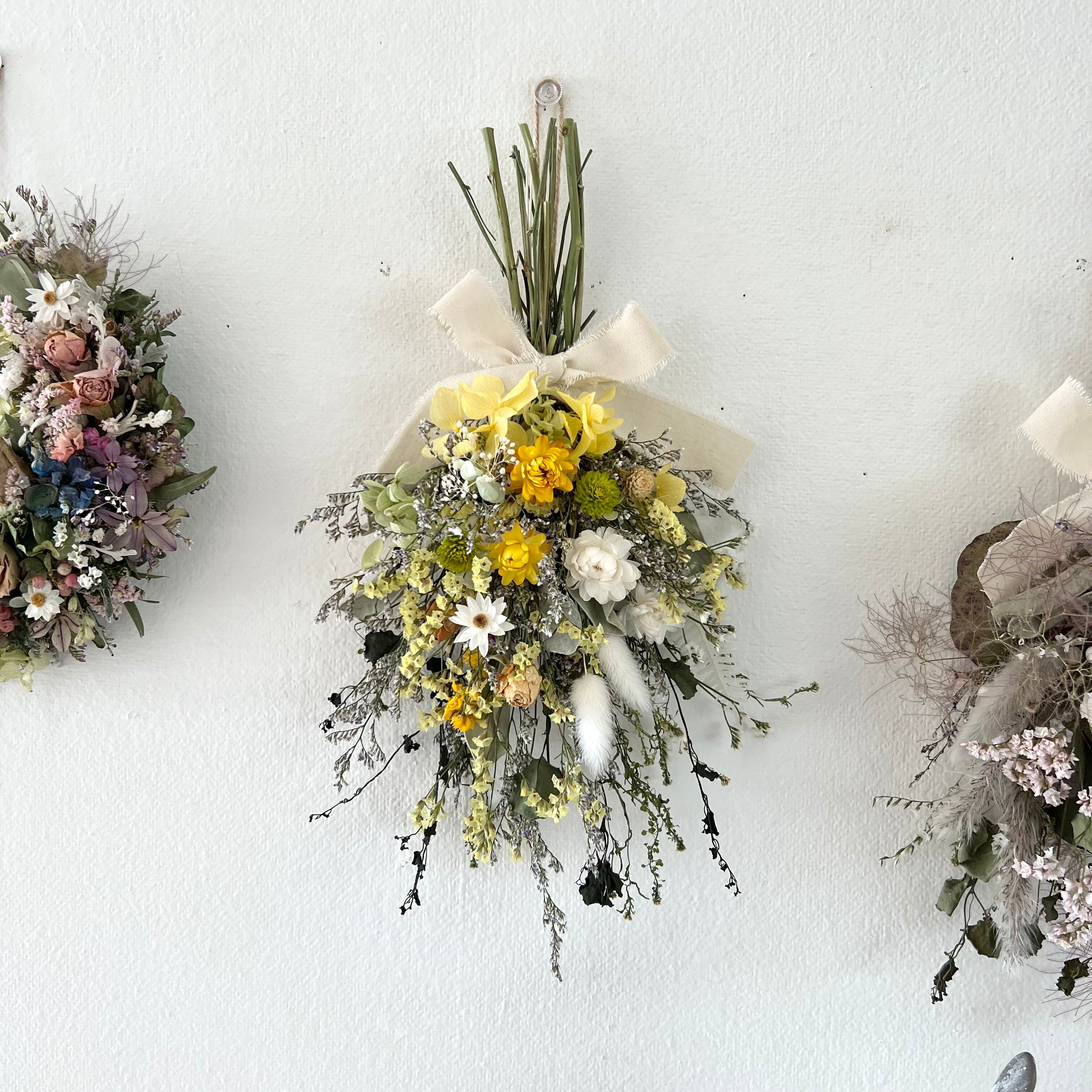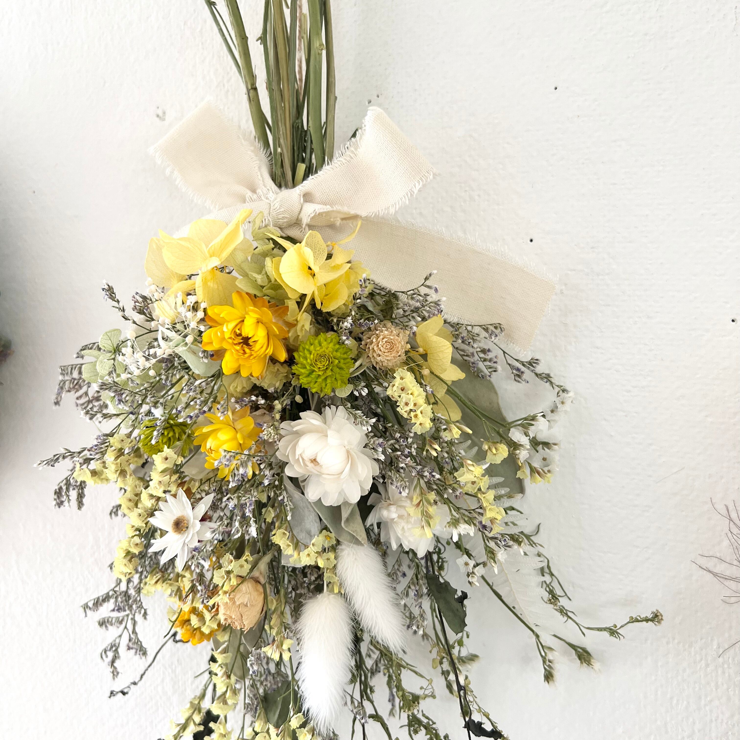 ヘリクリサムと小花のナチュラルスワッグ ドライフラワー 誕生日プレゼント 引っ越し祝い 記念日 ギフト