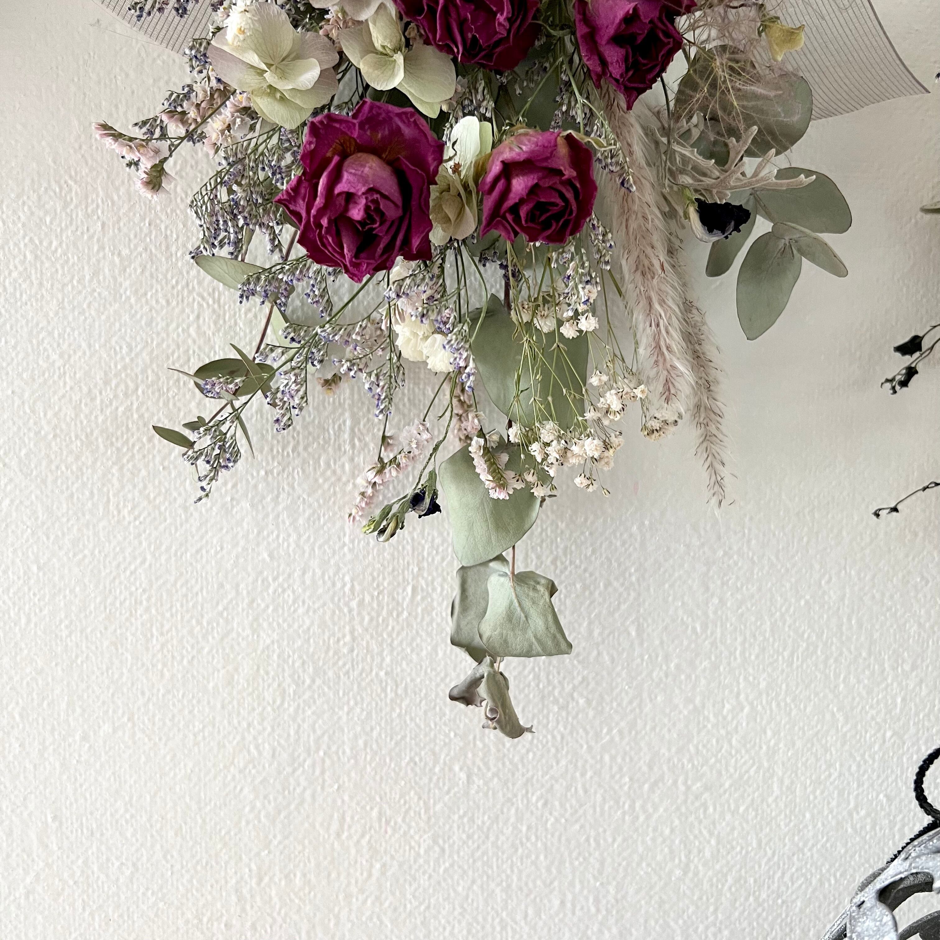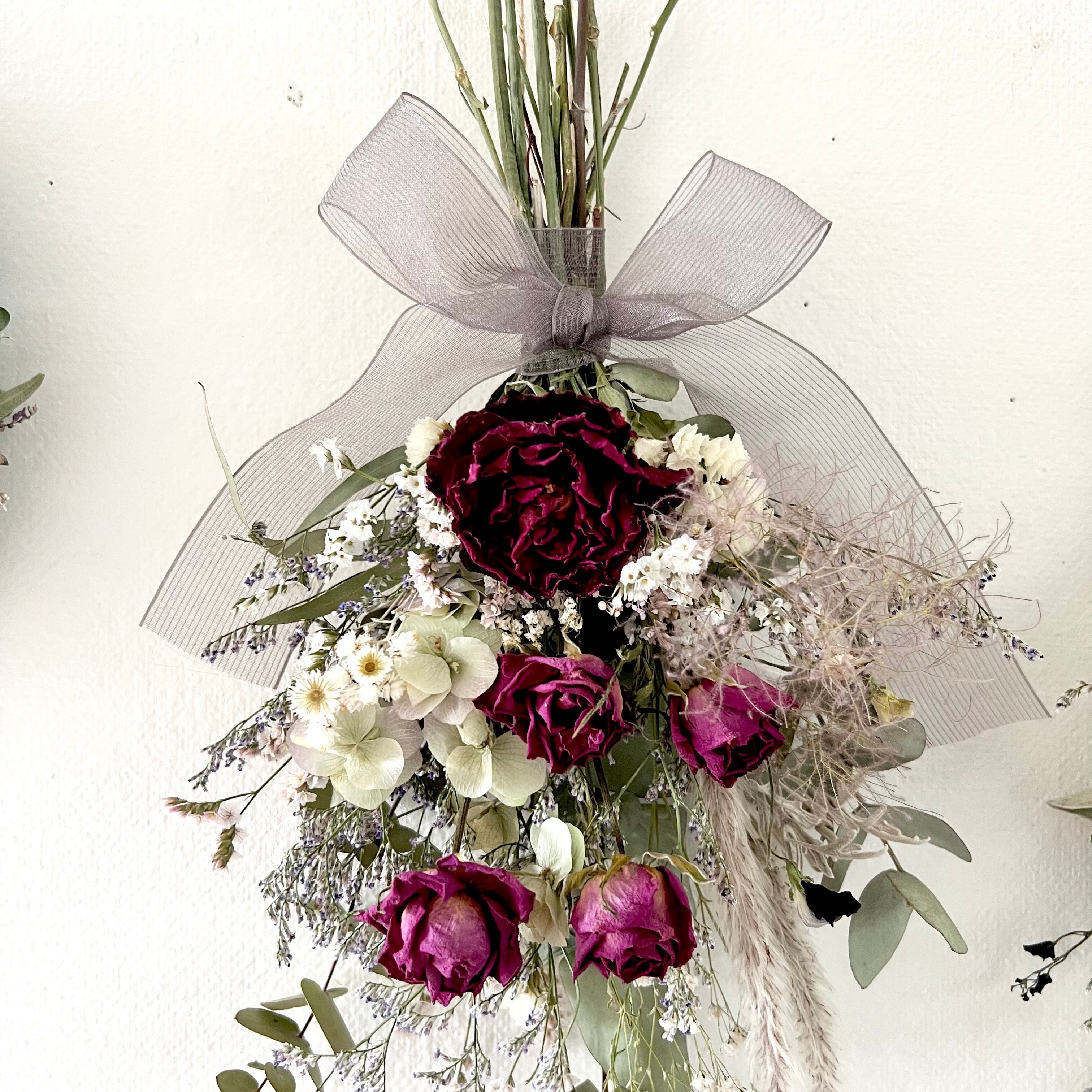 ローズと小花のナチュラルスワッグ ドライフラワー 誕生日プレゼント 引っ越し祝い 記念日 ギフト