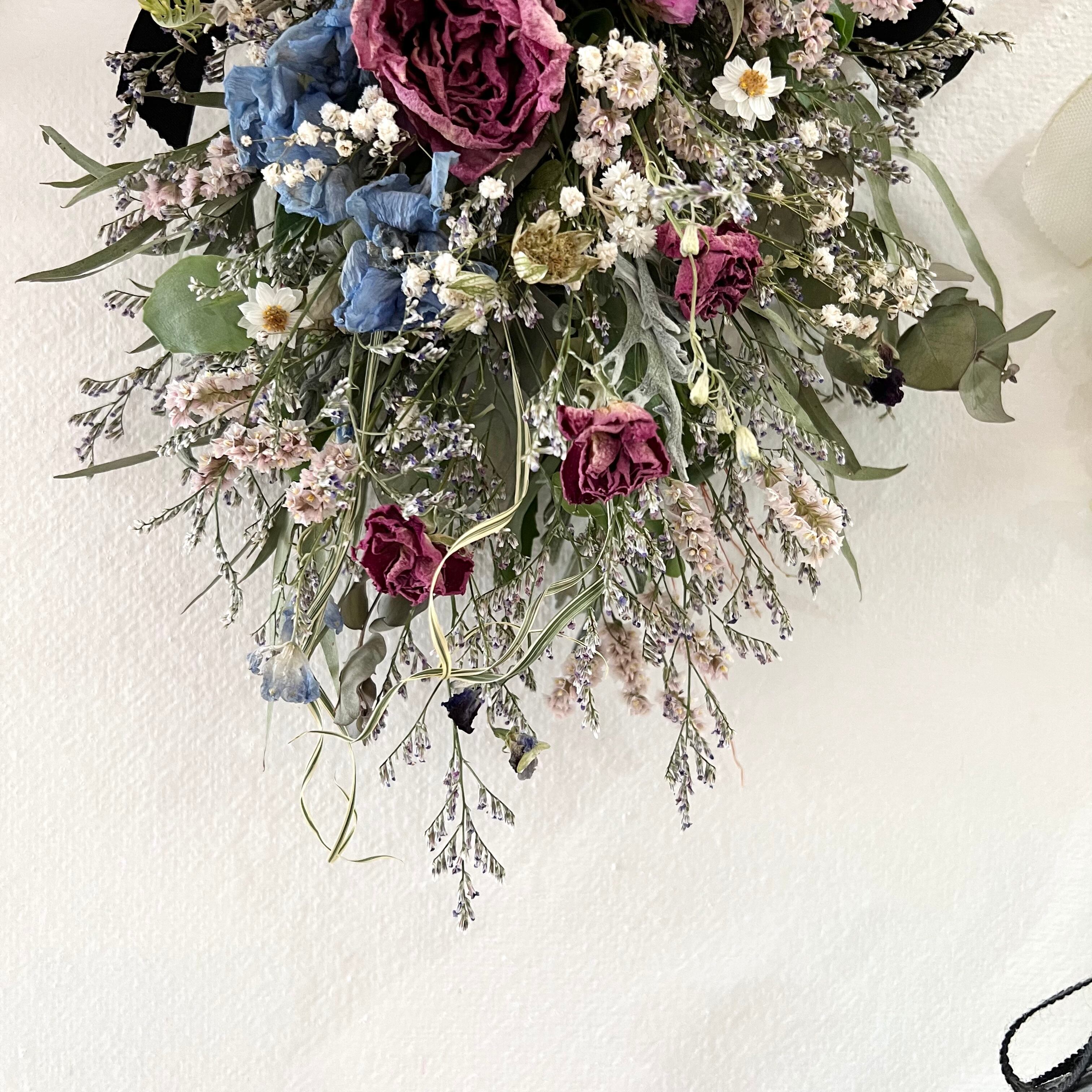 ・花材 ユーカリ ローズ スターチス HBスターチス かすみ草 ブルーファンタジア 紫陽花 シダ花かんざし ラクスパー コキア スイートピー アストランチャ ハハコソウ セダム リボン等