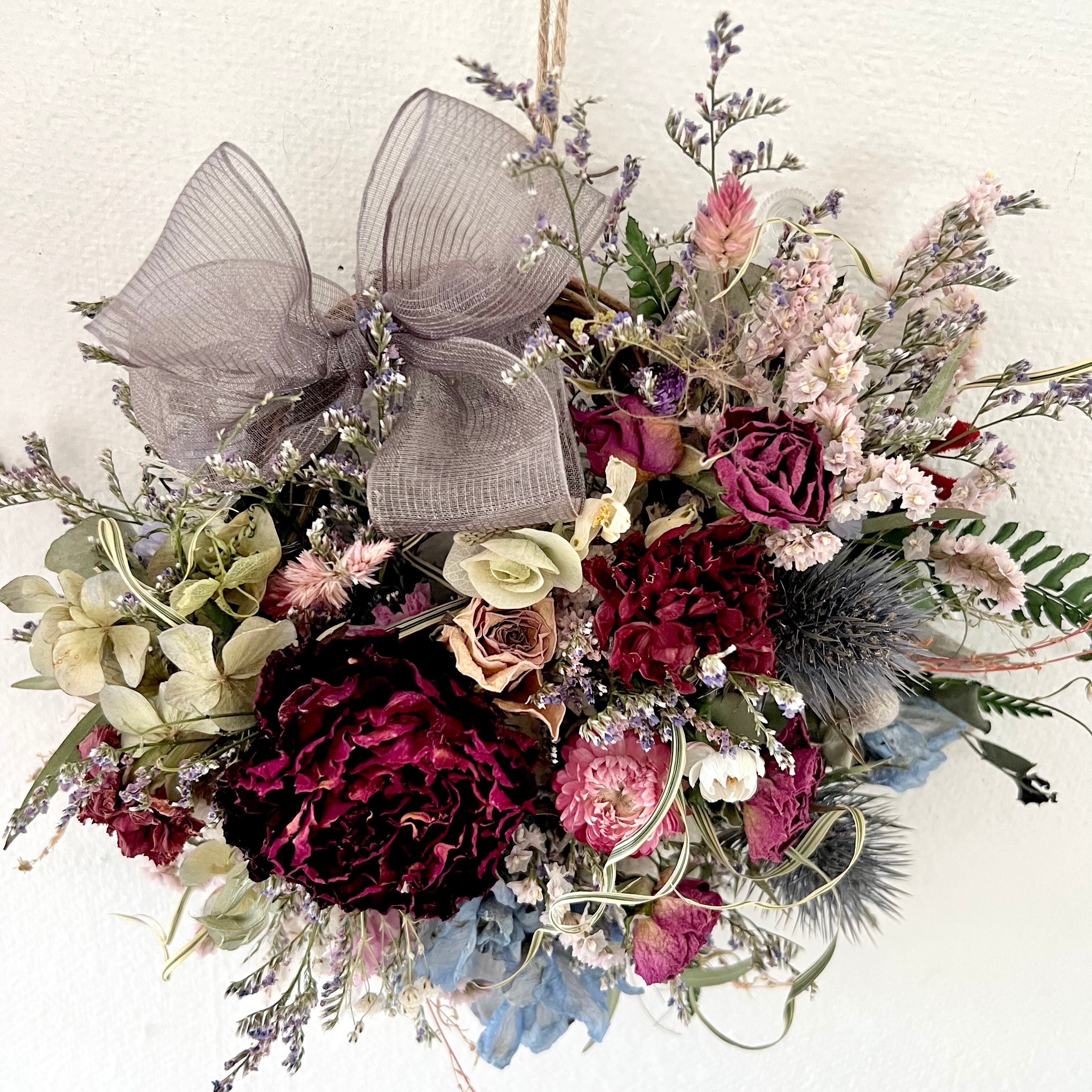 ローズとエリンジューム 小花のリース 誕生日プレゼント 引っ越し祝い 記念日 ギフト