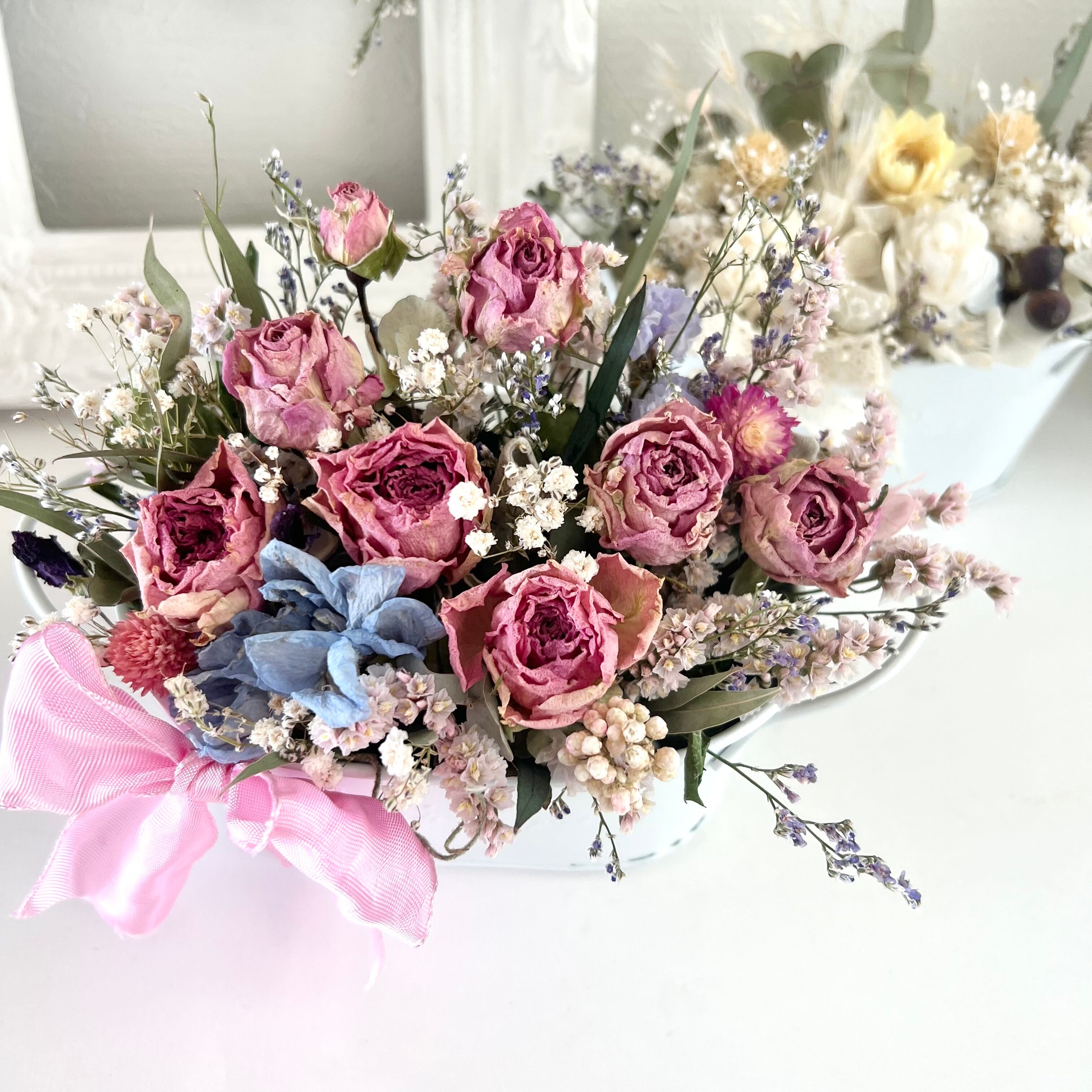 ピンク ローズと小花のアレンジメント ドライフラワー 誕生日プレゼント 引っ越し祝い 記念日 ギフト