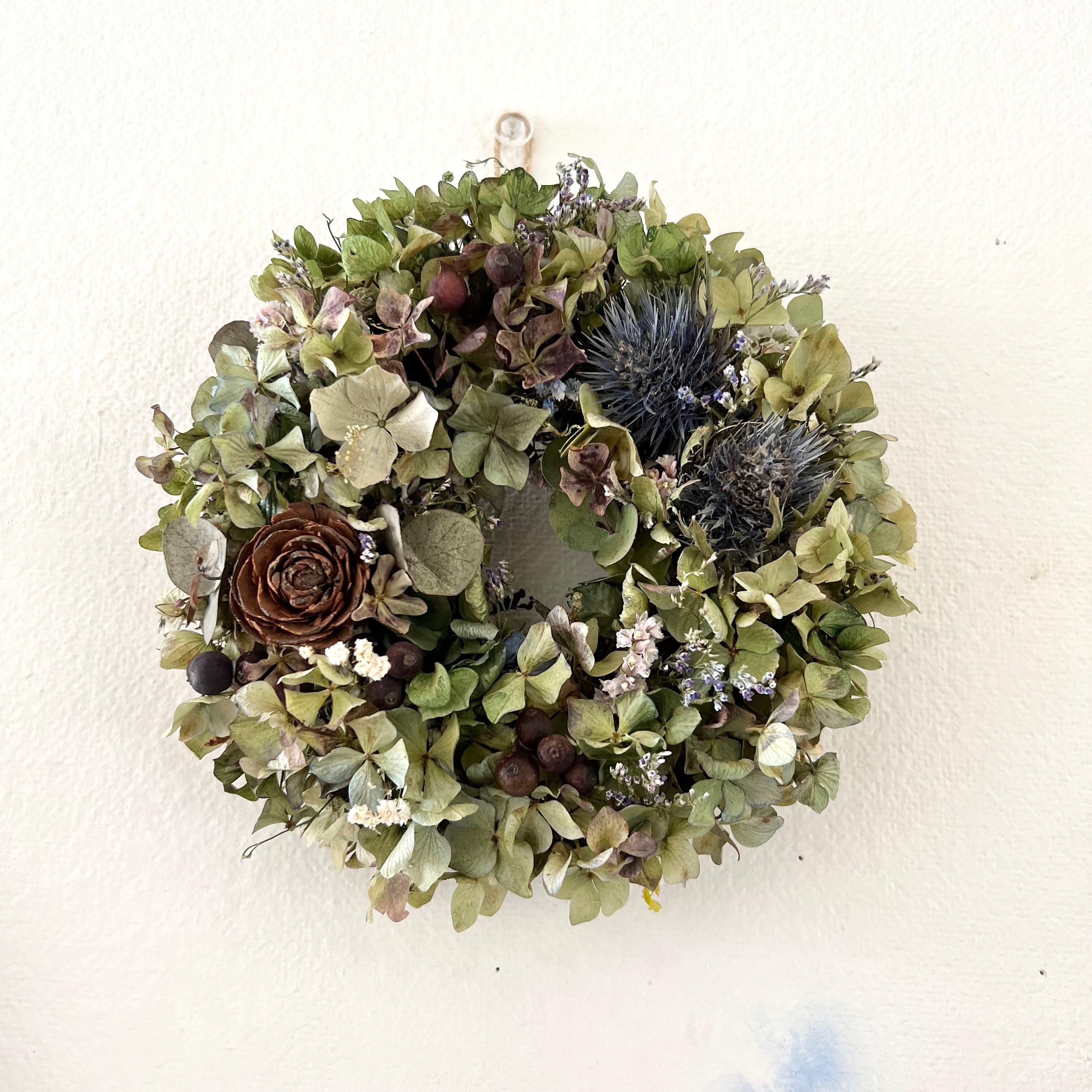 紫陽花 エリンジュームのリース ドライフラワー 誕生日プレゼント 引っ越し祝い 記念日 ギフト
