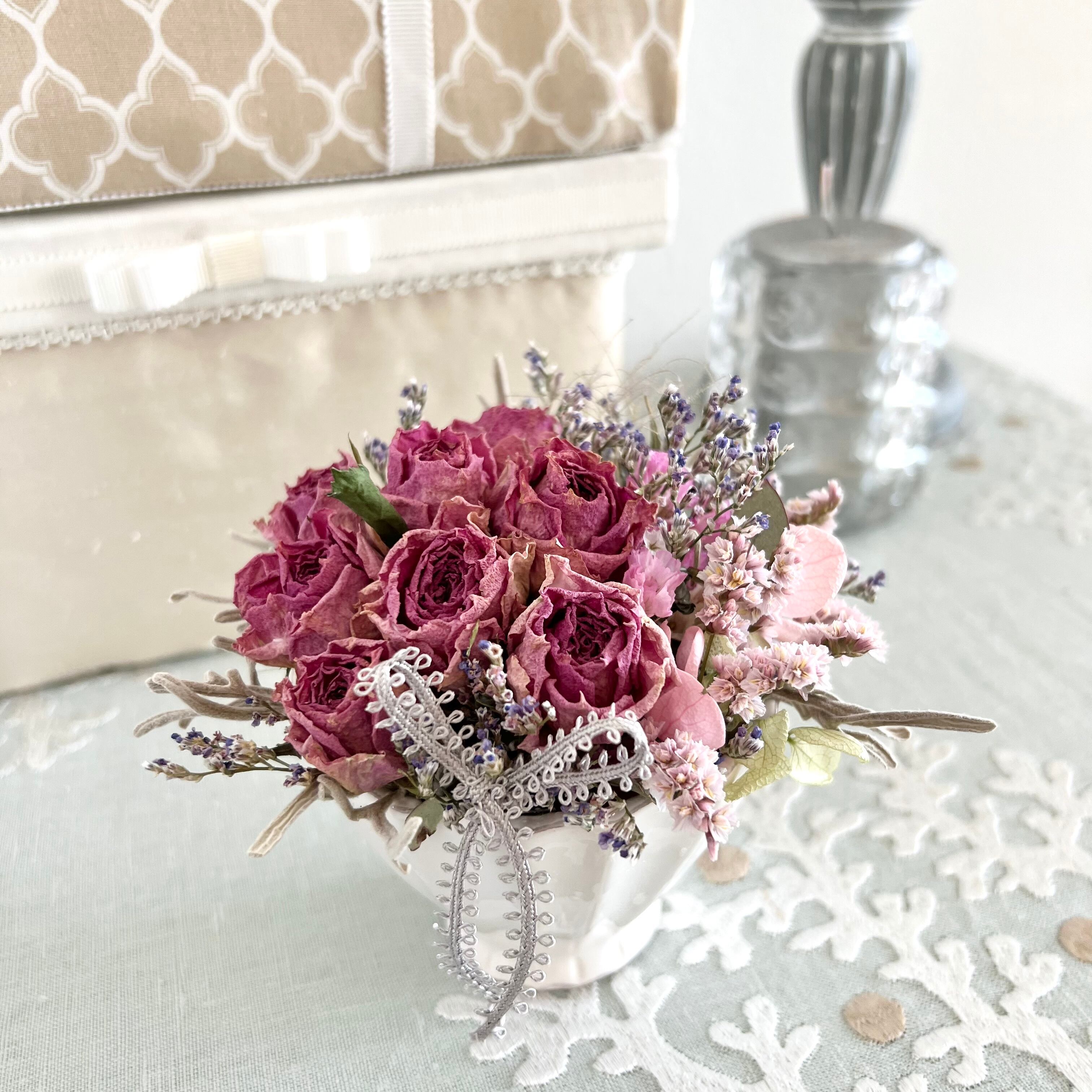 ピンク ローズと小花 ドライフラワーアレンジメント 誕生日プレゼント 引っ越し祝い 記念日 ギフト