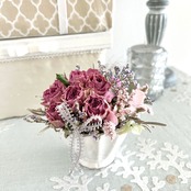 ホワイトの花器にピンクのローズと小花をアレンジしました。