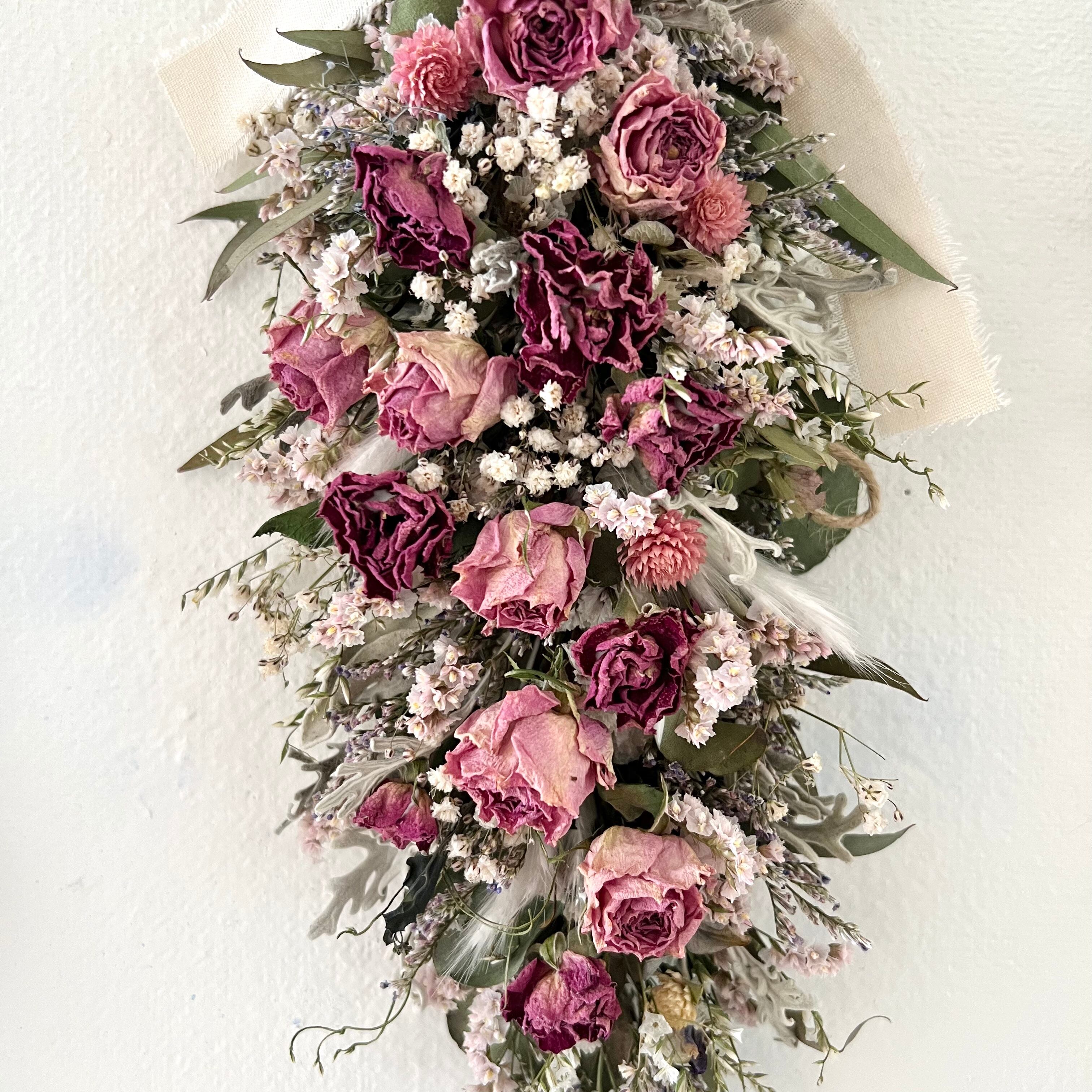 ピンクローズ 横 縦スワッグ ドライフラワー 誕生日プレゼント 引っ越し祝い 記念日 ギフト