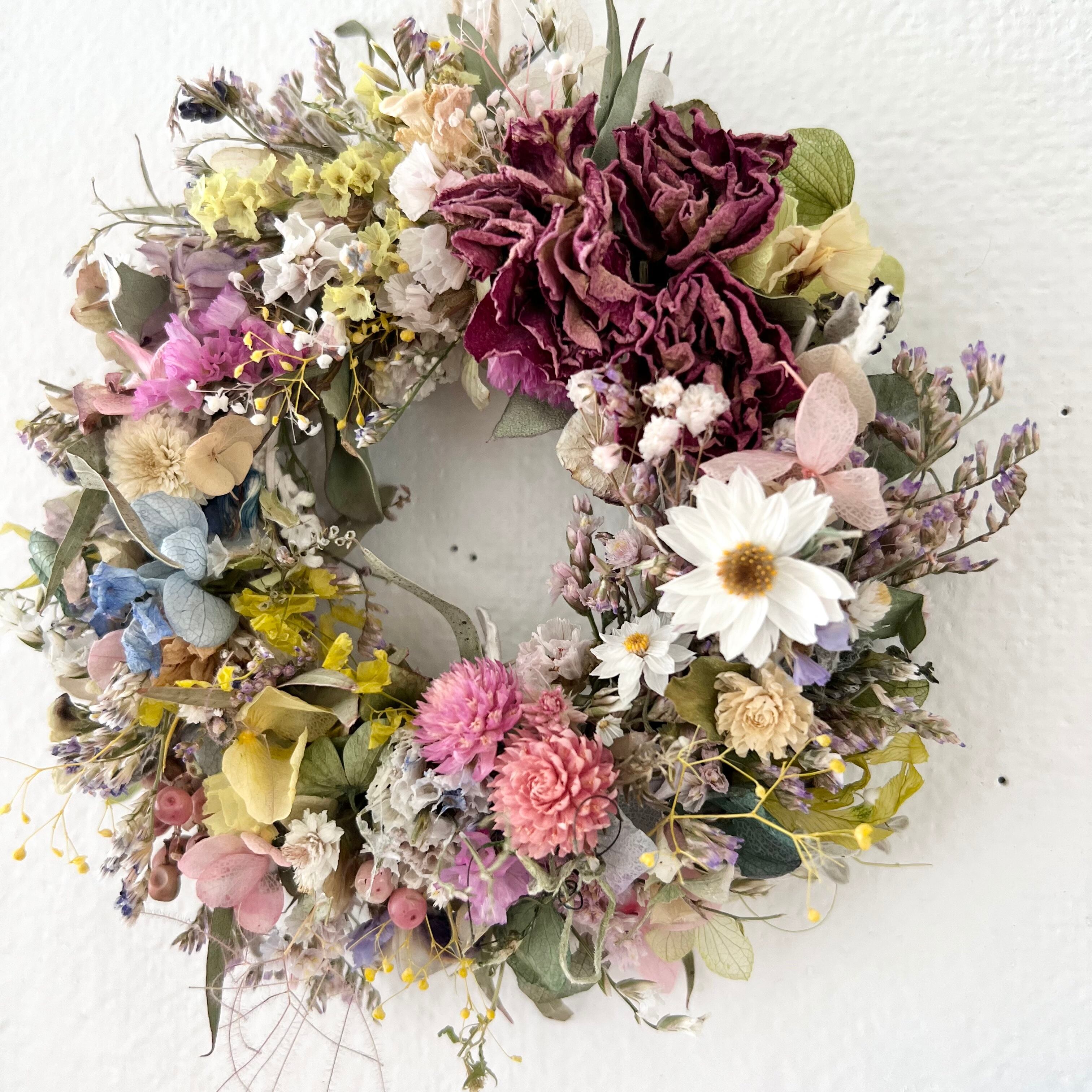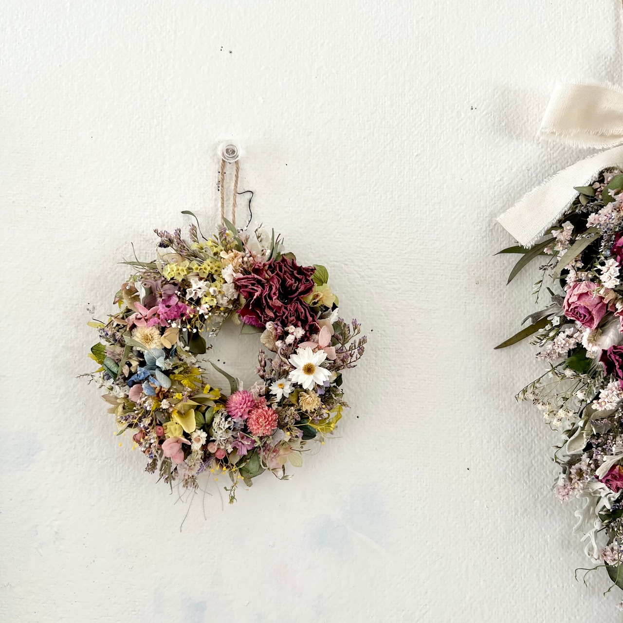 ローズと小花のミニリース 14cm ドライフラワー 誕生日プレゼント 引っ越し祝い 記念日 ギフト