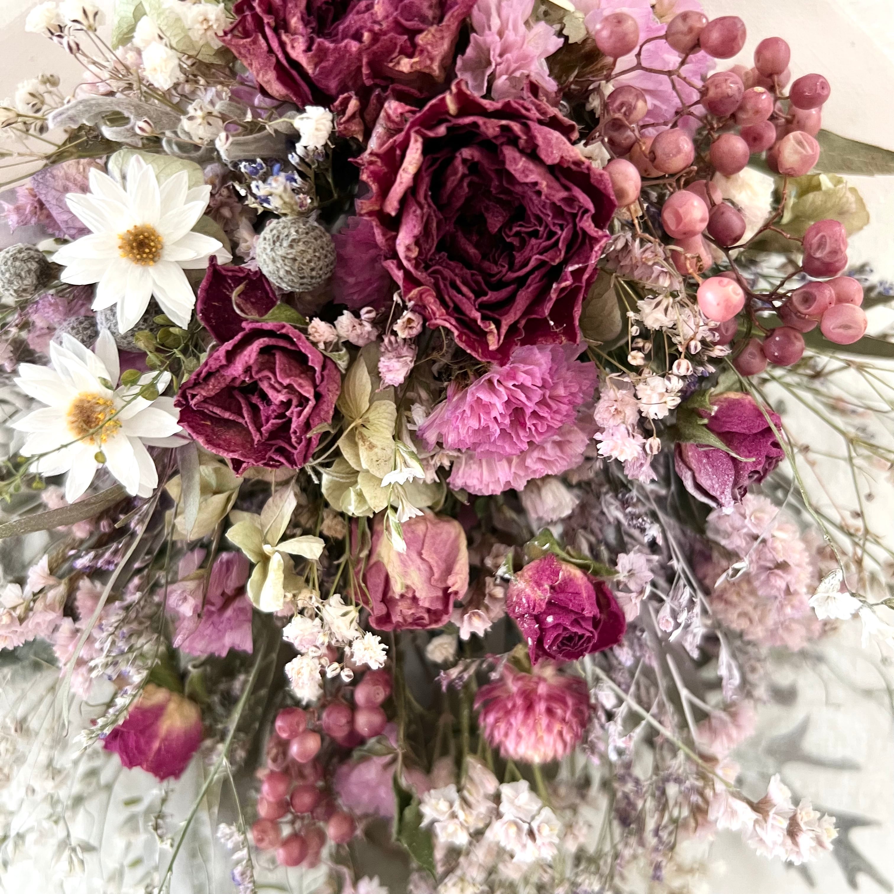 *ドライフラワーは繊細です。 丁寧にラッピング 梱包していますが、 性質上配送中の花 葉落ちはご了承下さい。