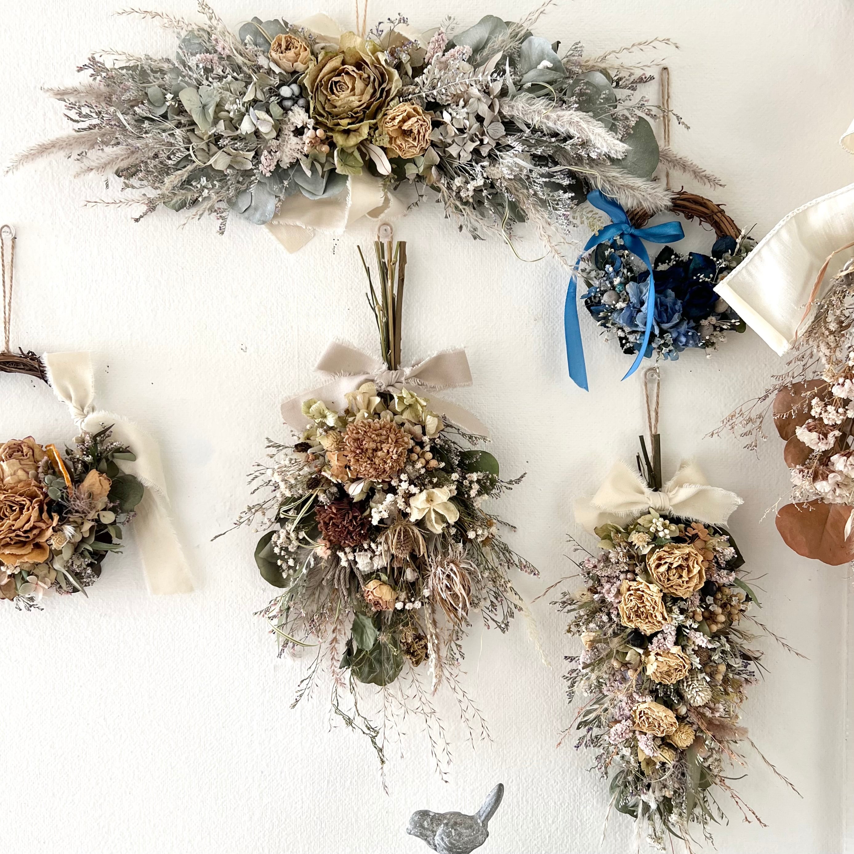 アンティークカラー マムとローズのスワッグ ドライフラワー 誕生日プレゼント 引っ越し祝い 記念日 ギフト