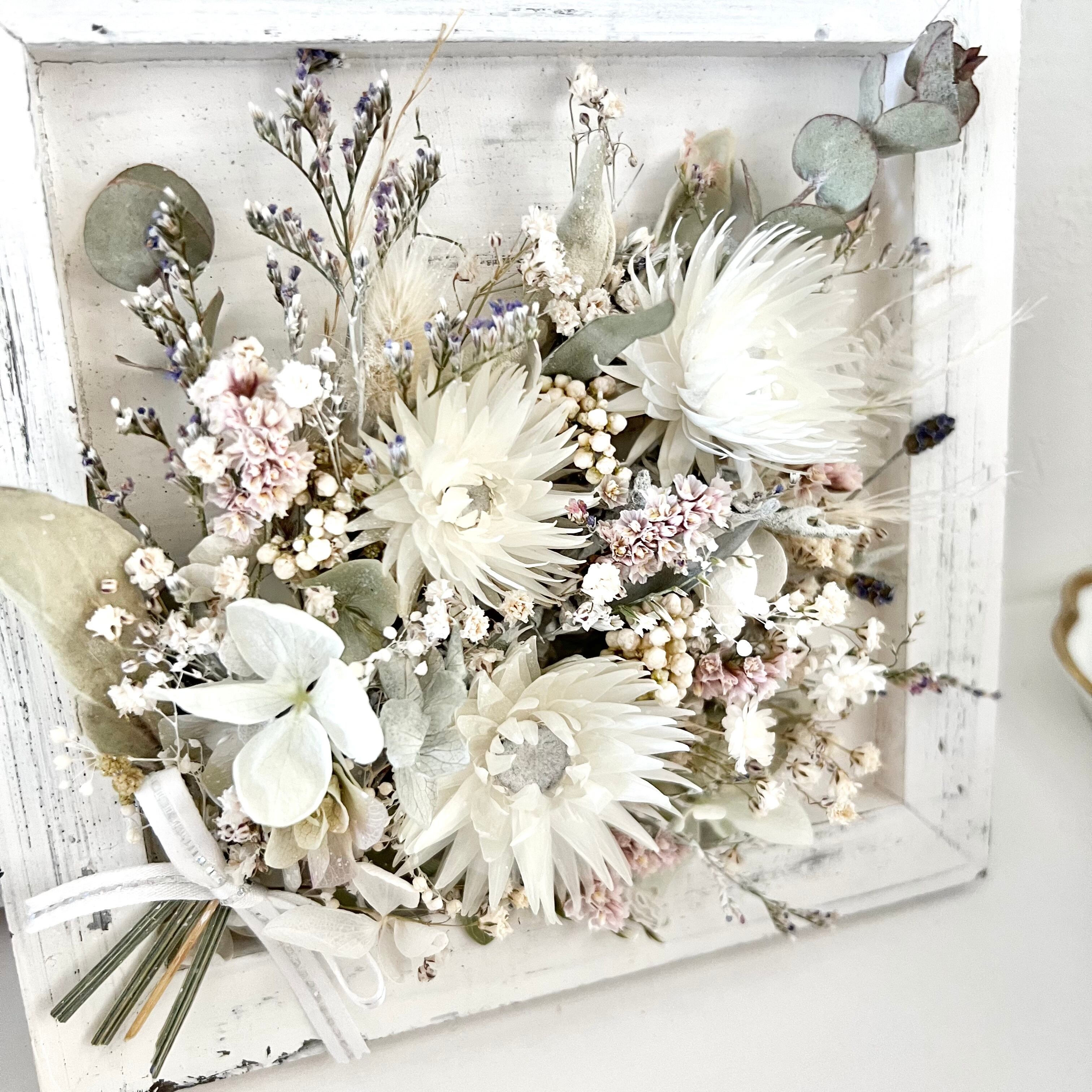 引っ越し祝い バレンタイン ホワイトデー クリスマスプレゼント 新築祝い ひな祭り 母の日 ホワイト 紫陽花 リース インテリアフラワー ドライフラワー スワッグ フレームアレンジ 母の日ギフト **