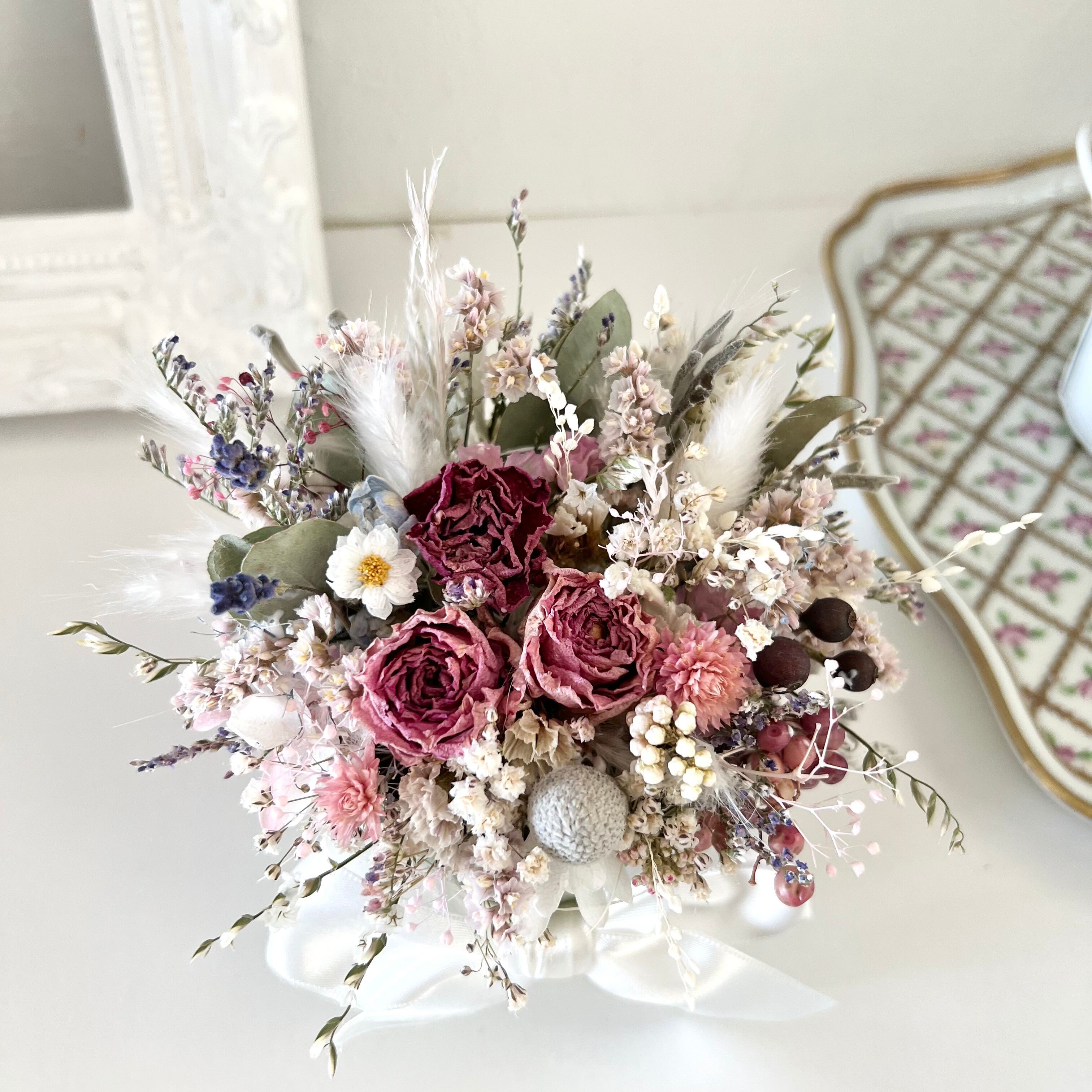 ローズと小花のアレンジメント ドライフラワー プリザーブドフラワー 誕生日プレゼント 引っ越し祝い 記念日 ギフト