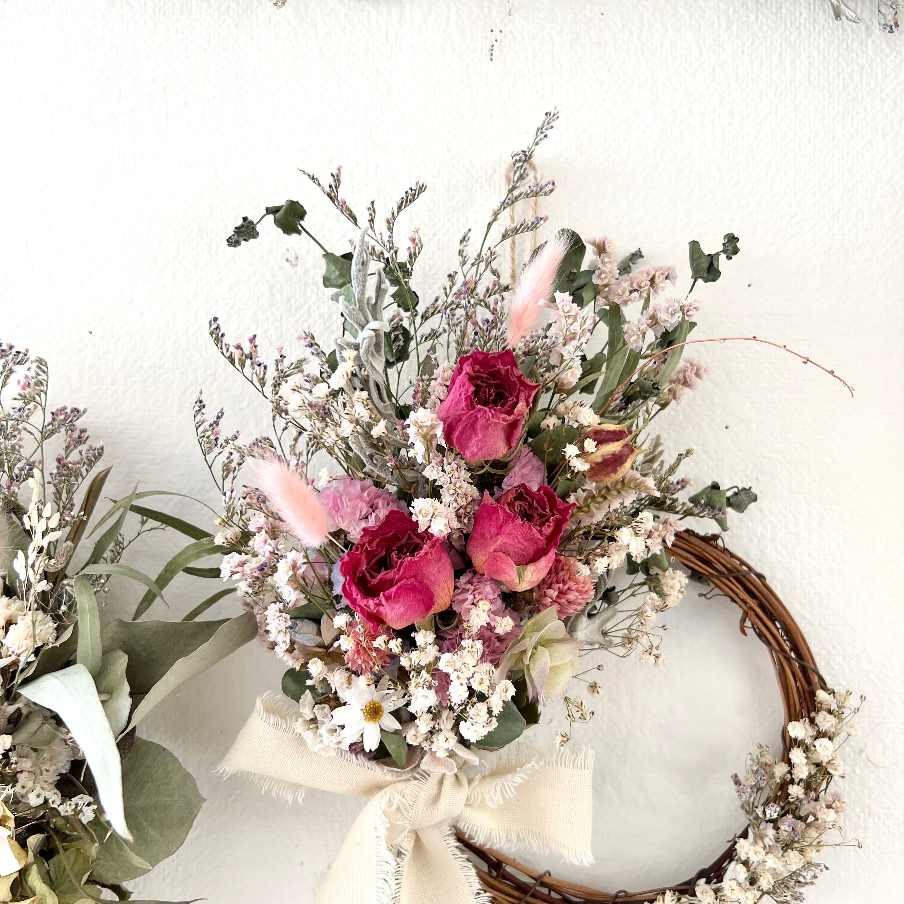 ローズと小花のリース 壁飾り ドライフラワー 誕生日プレゼント 引っ越し祝い 記念日 ギフト